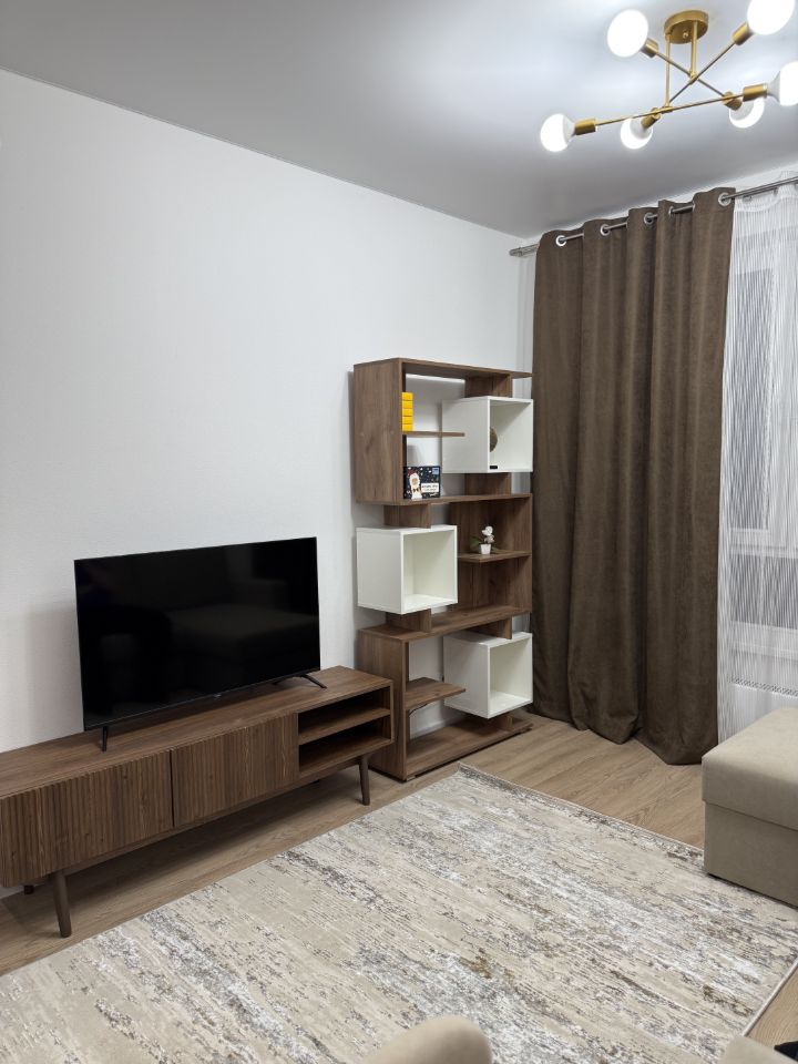 Максимально функциональная квартира с ремонтом, оснащена всем необходимым для комфортного проживания. В квартире имеются: стильная и удобная кровать-диван, функциональный стеллаж, телевизор Haier 43 дюйма, подключен wi-fi, раздвижной круглый стол 90х90 см, 4 стула, отдельная кровать с ортопедическим матрасом, гардеробный шкаф.