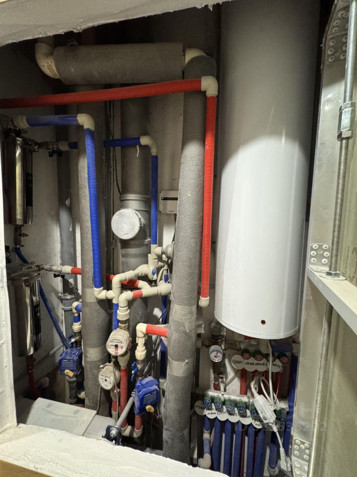Первый санузел 3.8 м2 выполнен в светлых, легких тонах. Имеется полноценная ванная и двойная раковина, унитаз. Второй санузел 3.4 м2 выполнен в темных тонах, душевая кабина выложена из керамогранита, унитаз, раковина. В обоих санузлах установлены системы от протечек, фильтры очистки воды, во втором санузле установлен водонагреватель на 50 литров - в сезонное отключение воды не будет никаких проблем.