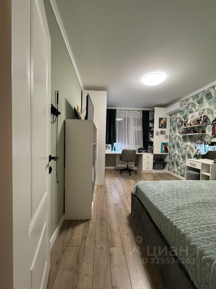 В уютной родительской спальне 12,7 м3 имеется выход на утепелнный балкон, с которого открывается прекрасный вид на поселок. На балконе теплый пол, свет, розетки.