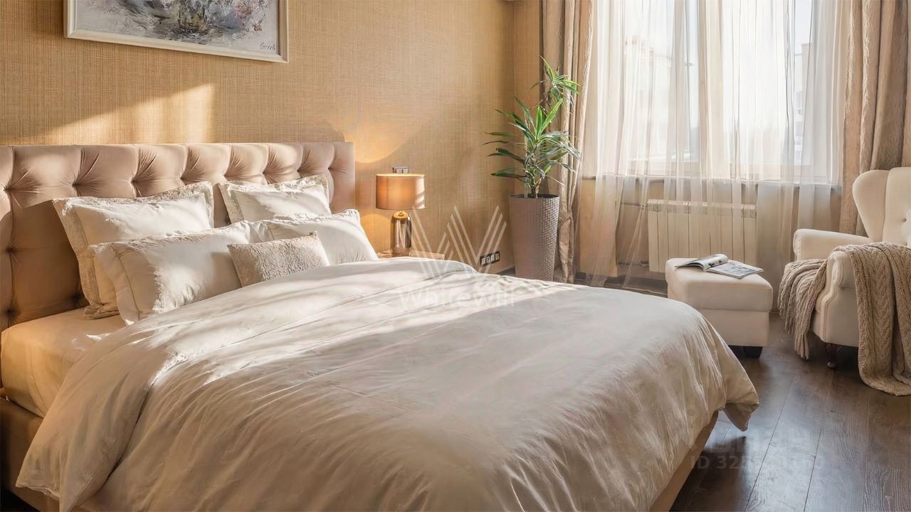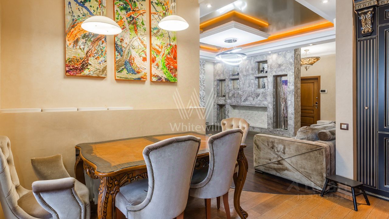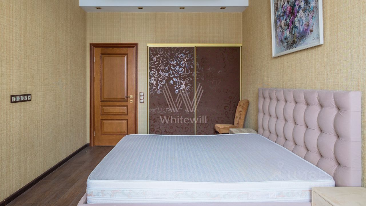 Квартира с 2-мя спальнями общей площадью 100 м² в комплексе ''Пырьева, 9'' на 22-м этаже. Выполнена дизайнерская отделка в уникальном авторском стиле в светлых тонах. Благодаря большим окнам и потолкам высотой 3 метра пространство наполнено естественным светом и воздухом. Спланирована кухня-гостиная с обеденной зоной, 2 спальни, ванная комната, санузел, прихожая. Квартира полностью меблирована и оборудована бытовой техникой, установлены кондиционеры. Из окон открывается панорамный вид на город в сторону делового центра ''Москва-Сити''.