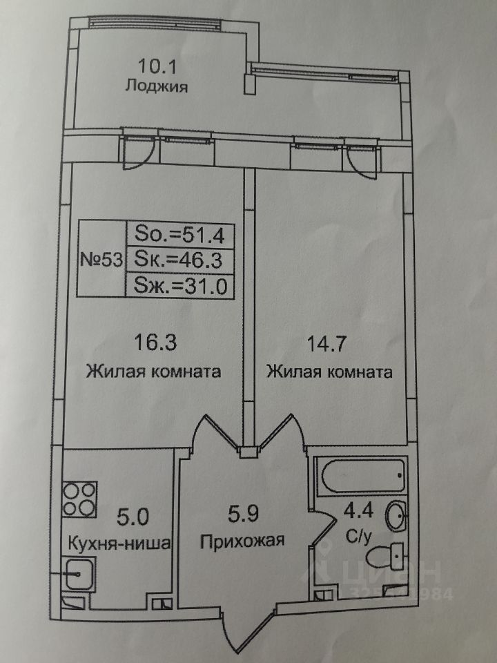 Общая площадь52,85 м2
