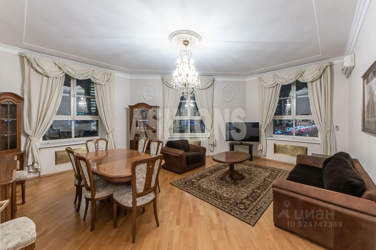 Функциональная планировка квартиры: общая зона, кухня, 2 кабинета, 1 совмещенный с/у с джакузи, просторный холл. Потрясающие виды на Москва-Сити и Пресненскую набережную. Кухня оснащена всей необходимой бытовой техникой. Высокие потолки 3,2 м. Мебель возможно вывезти.