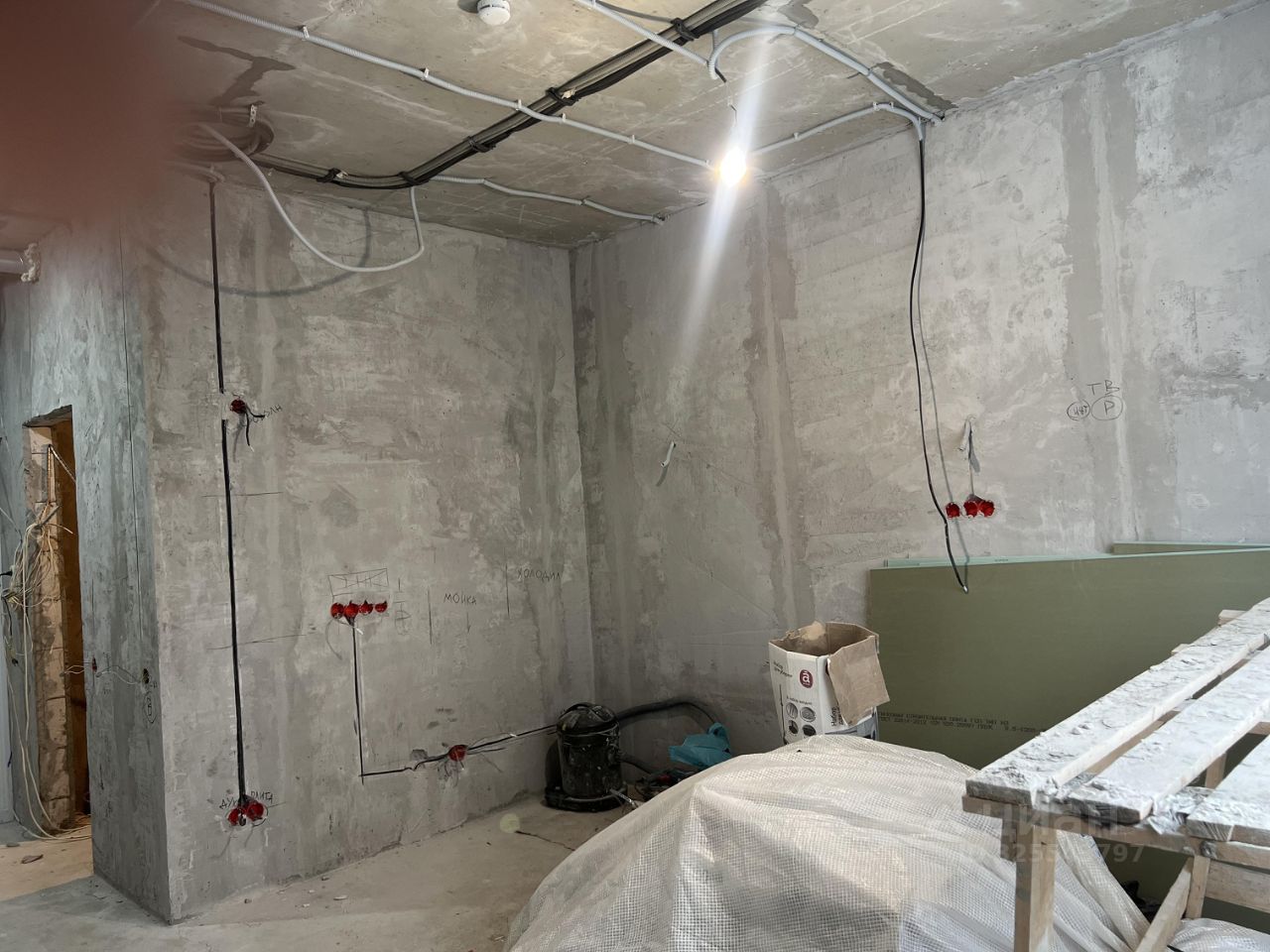 Квартира предлагается без ремонта: выполнена разводка электрики, стяжка. пола и штукатурка стен. Санузел совмещенный.