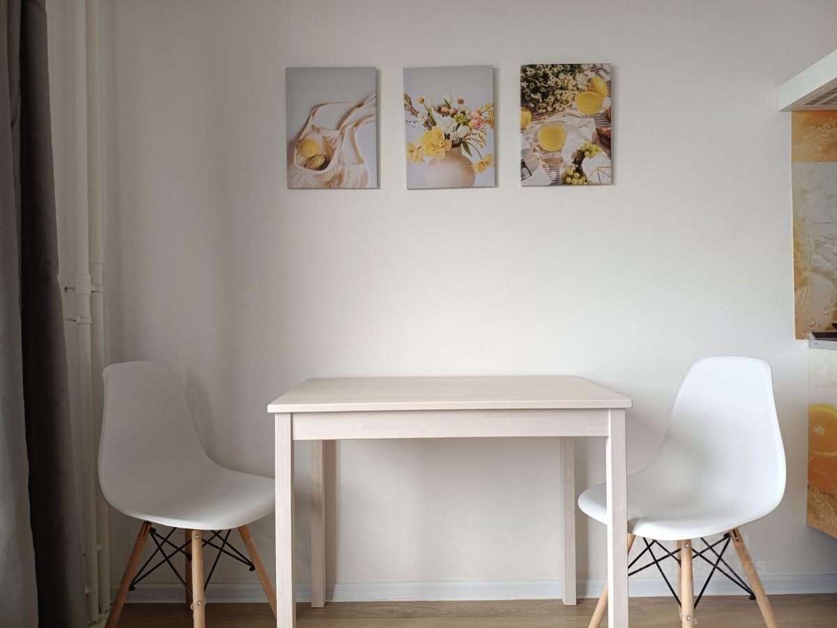 В квартире выполнен косметический ремонт, что позволяет сразу заселиться и жить с комфортом. Пространство студии грамотно организовано: жилая зона плавно переходит в кухню. На кухне есть вся необходимая мебель и техника, включая холодильник и стиральную машину. Ванная комната оборудована душевой кабиной. Дом оснащен наземной парковкой, поэтому можно не беспокоиться о месте для автомобиля.