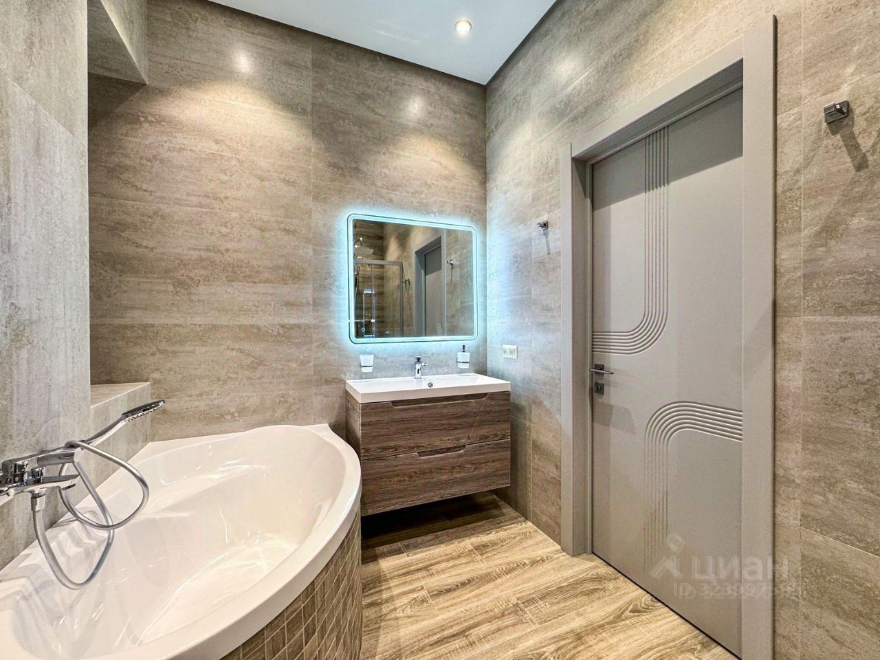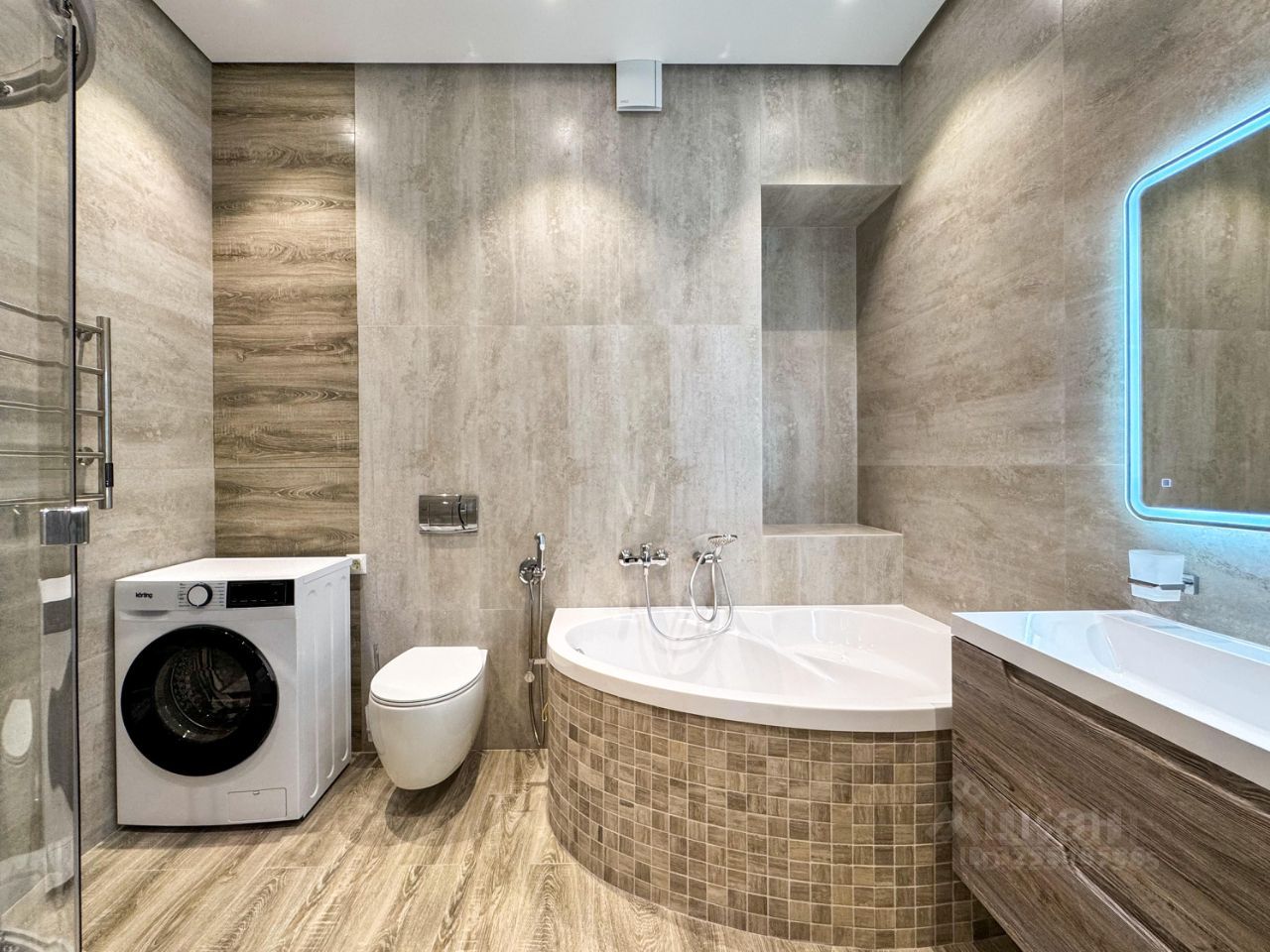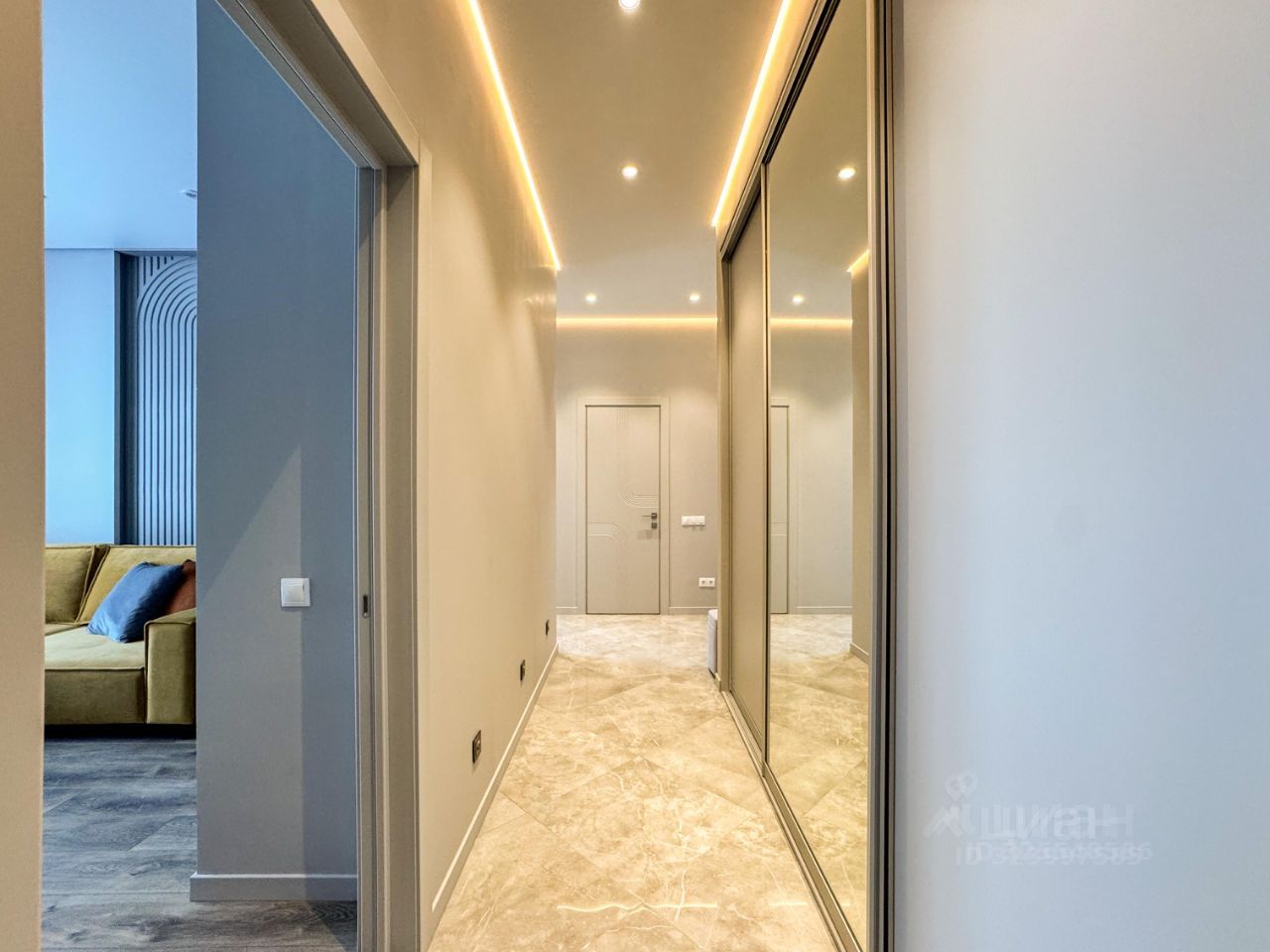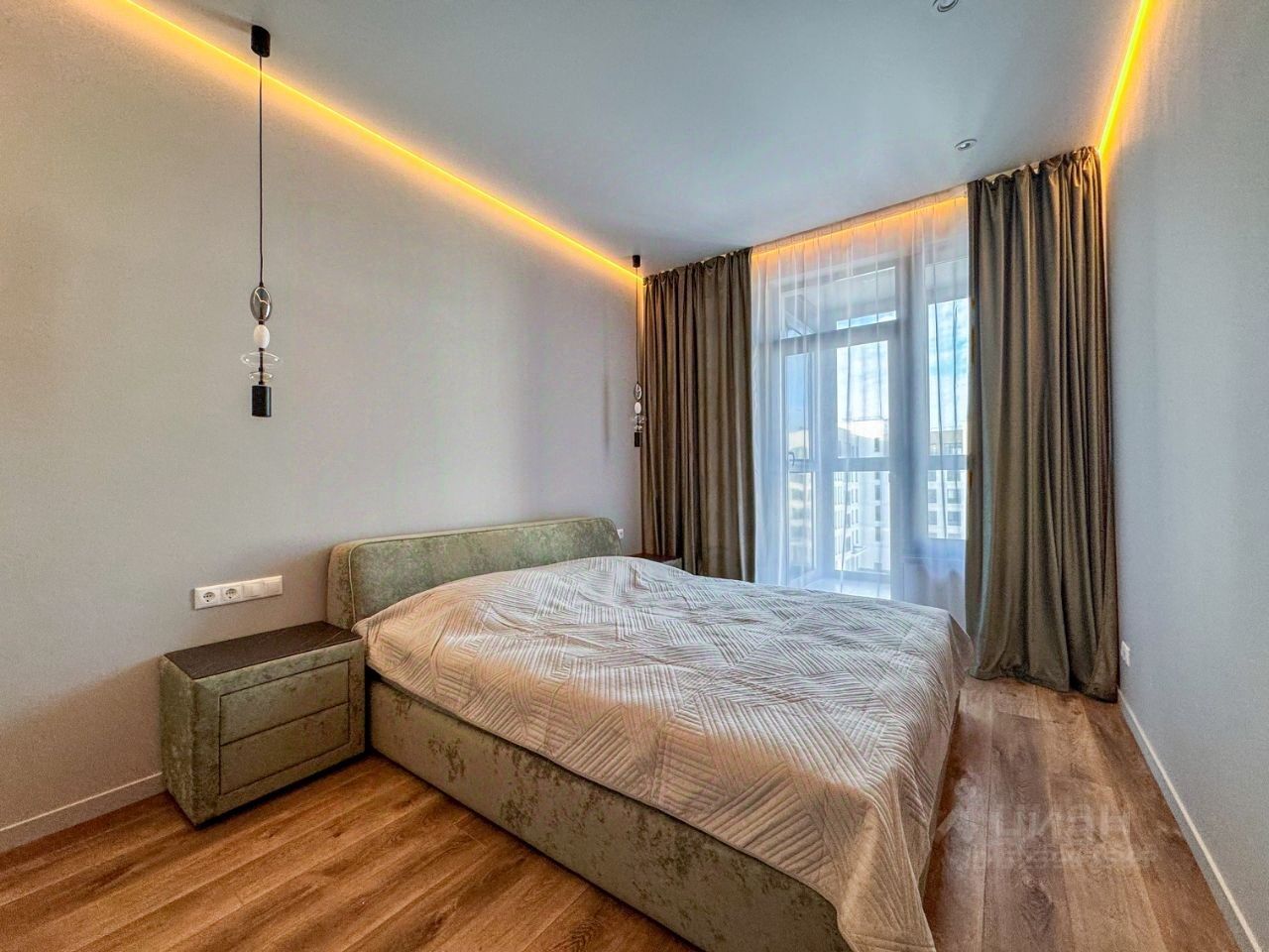 По планировке: -Просторная кухня -Спальня с двуспальной кроватью и ортопедическим матрасом 200х180 -Лоджия с небольшим кладовым помещением (за черной дверью на фото) -Кабинет с раскладывающимся диваном и оборудованным рабочим местом -Большой сан.узел с ванной и отдельностоящей душевой кабиной Кондиционеры в каждой комнате, подогрев пола на кухне, в лоджии,в коридоре и сан.узле. Дополнительно на кузне установлены: фильтр для питьевой воды, измельчитель бытовых отходов в раковине.