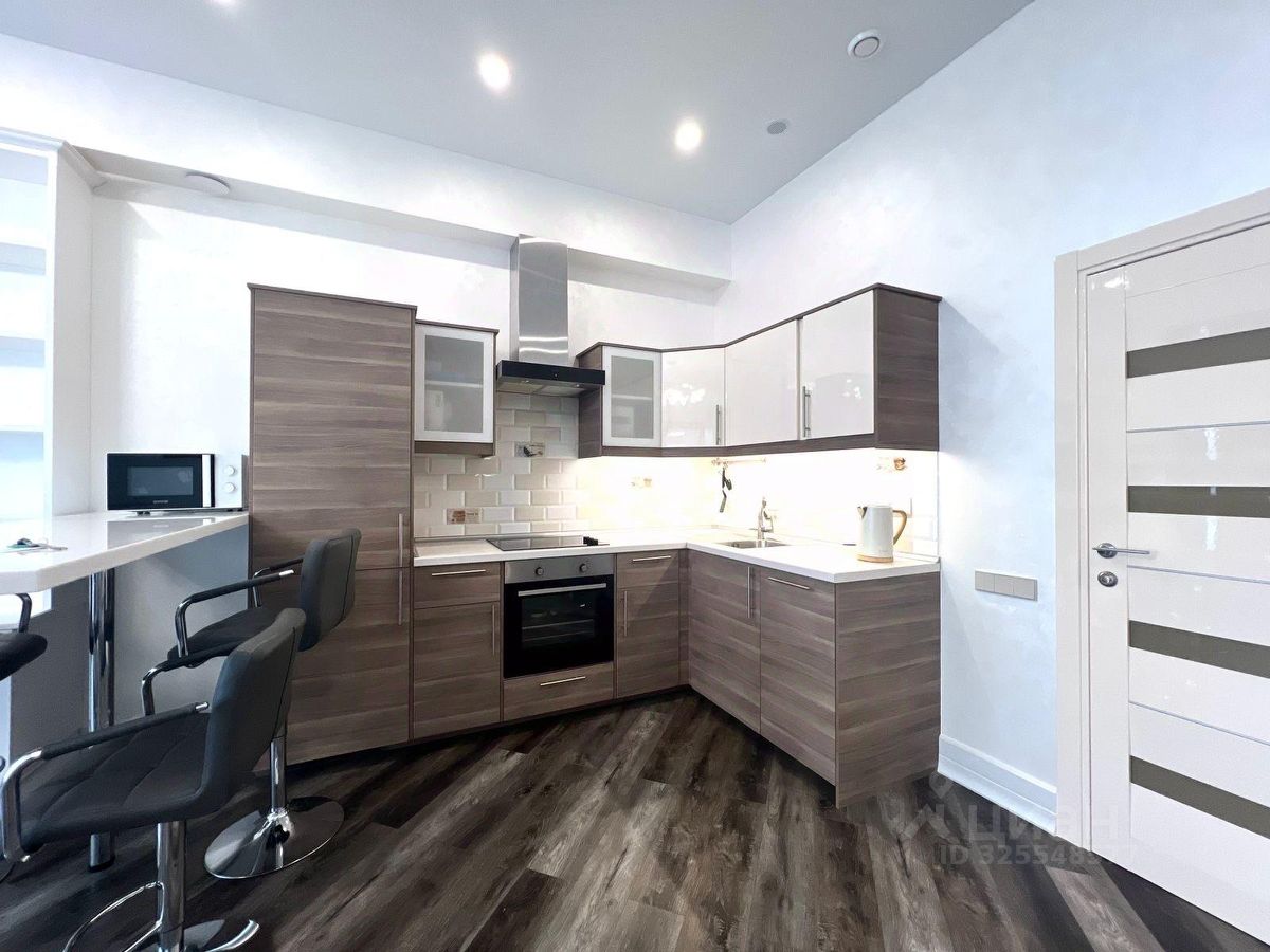 Сдаётся стильный апартамент в Москве на Нижней Красносельской улице, всего в 5 минутах пешком от метро Бауманская. Общая площадь — 53 кв. м, жилая — 30 кв. м, кухня — 10 кв. м. Апартамент расположен на 7 этаже 10-этажного монолитного дома, построенного в 2015 году. Высота потолков впечатляет — 3.3 метра.