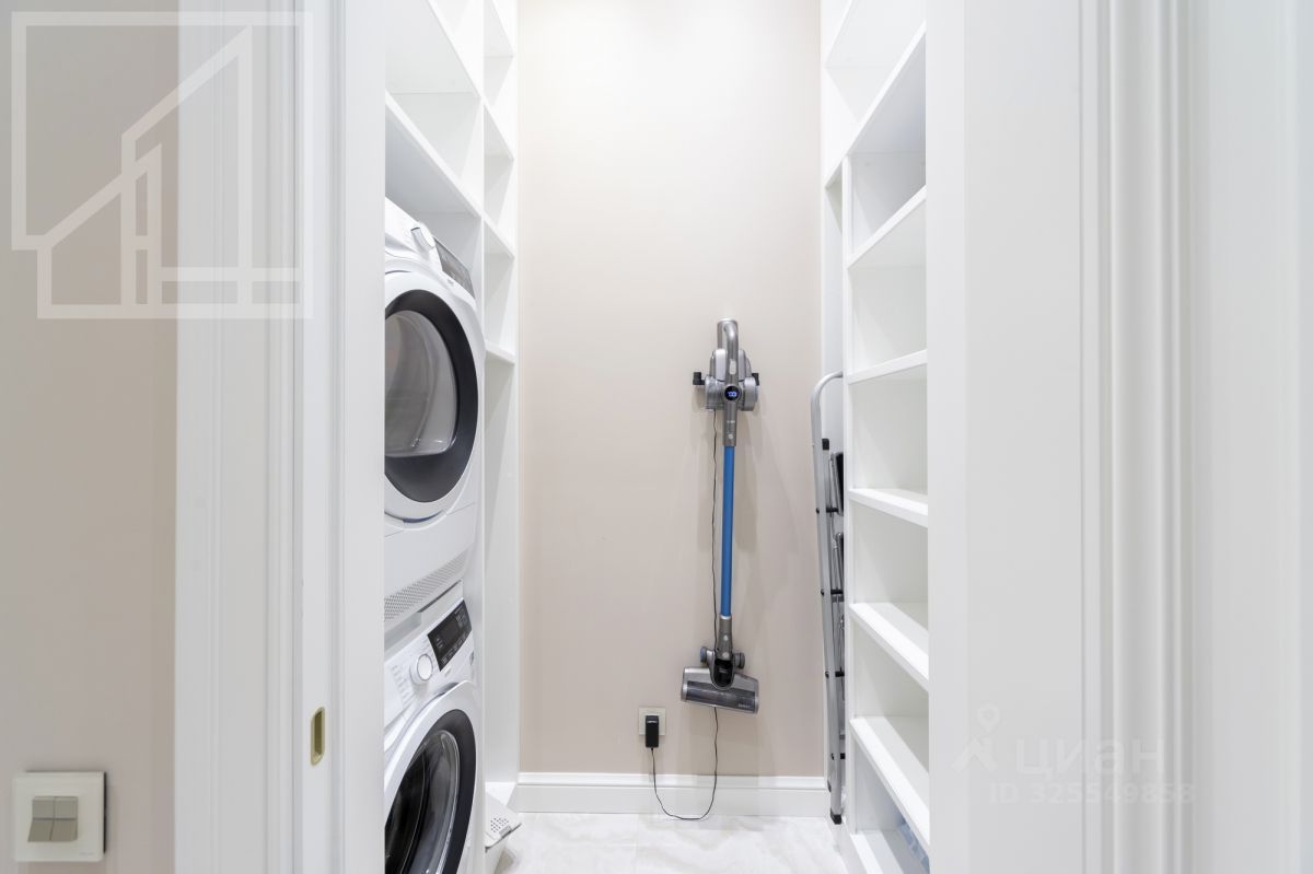 Планировка: гостиная, кухня-обеденная зона, 2 спальни (одна с санузлом), второй санузел, постирочная. Гардеробные зоны обустроены в просторном коридоре и спальнях. Высокие потолки (3,2 м).В отделке использованы качественные отделочные материалы. Квартира полностью меблирована и готова к оперативному заселению.