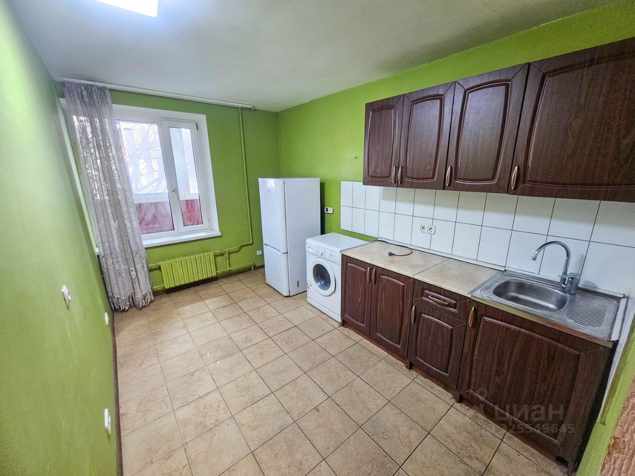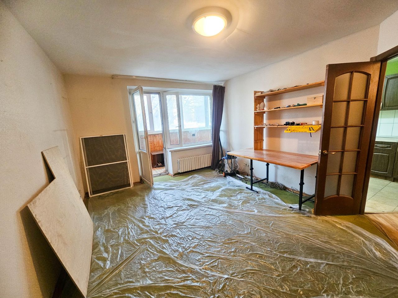 Большая застекленная лоджия на комнату и кухню, шума от дороги не слышно.