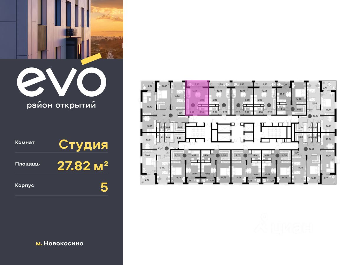 Продается студия 27.82 кв.м. в жилом комплексе EVO на 5 этаже по адресу: Московская область, г. Реутов, ул. Комсомольская. Скидка 10% при полной оплате!* EVO - проект комфорт-класса от девелопера Dogma. Каждый житель сможет открыть для себя максимум возможностей. Совершенствоваться во всех направлениях: физическом, эмоциональном и материальном. В EVO можно открыть для себя новые виды спорта, найти единомышленников по хобби, партнеров по бизнесу, развивать в детях новые грани, наслаждаться природой и лаконичной архитектурой.