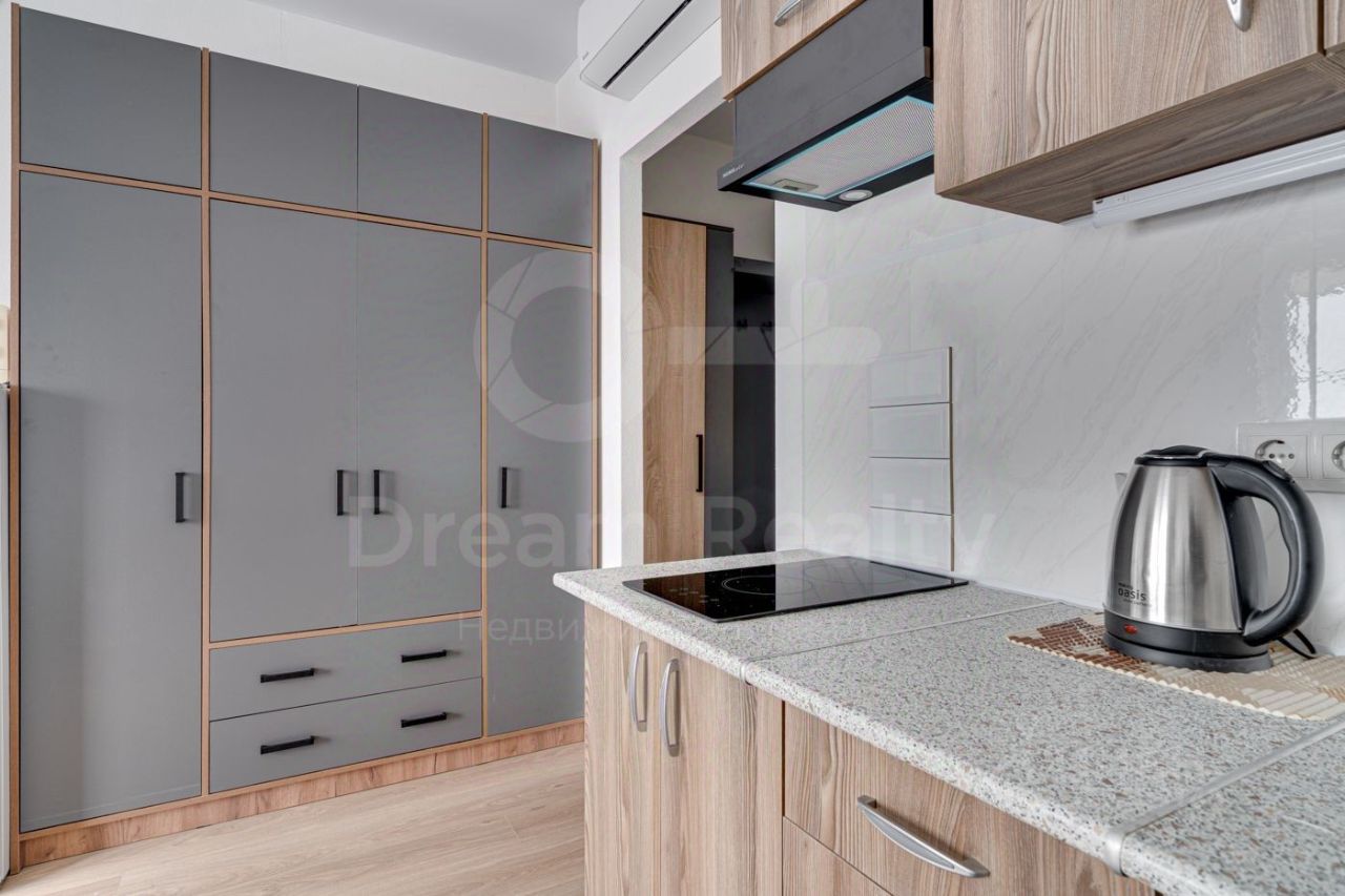Квартира расположена на 13 этаже, общая площадь 20 кв. м., просторная кухня-гостиная, полноценный санузел, прихожая. Комфортна для проживания 1-2 человек. Квартира с хорошим ремонтом, укомплектована всей необходимой для комфортного проживания мебелью и техникой: кухонный гарнитур, холодильник, микроволновая печь, стиральная машина, диван, комод, телевизор, вместительный шкаф в комнате и прихожей, можно сразу заехать и жить. Установлен кондиционер. Квартира очень светлая и теплая. Презентабельная входная группа, видеонаблюдение. В ЖК есть всё для комфортного проживания: несколько сетевых продуктовых магазинов (ВкусВилл, Пятерочка, Магнит), кафе, салонов красоты, пунктов выдачи.