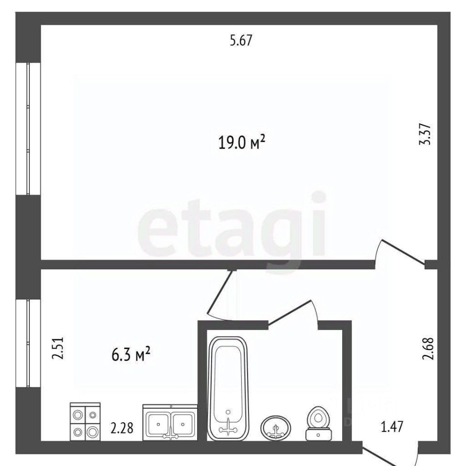 В квартире выполнен качественный ремонт, заменена сантехника, выровнены стены, установлена новая входная дверь. Удачная планировка: большая комната и отдельная кухня, высокий первый этаж. Окна выходят во двор, что делает проживание тихим и комфортным.
