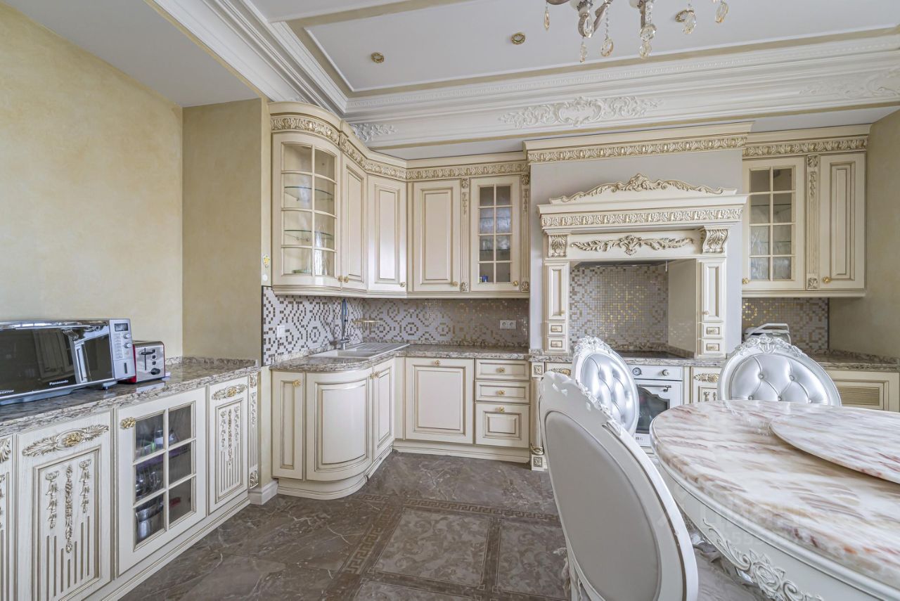 Предлагается в аренду 4-комнатная квартира в ЖК Доминион. В квартире выполнен дизайнерский ремонт в стиле современная классика, все материалы и мебель из Италии. Планировка: кухня-гостиная, 3 спальни, постирочная, 3 санузла. В отделке квартиры использованы дорогие и ценные материалы: мрамор, натуральный камень, различные породы дерева, текстильные обои. Кухня полностью укомплектованную бытовой техникой от мировых производителей. Уютная гостиная. Три просторные спальни. Три санузла оснащены качественной европейской сантехникой. Просторный холл, гардеробная комната, постирочная комната. Одно машиноместо в подземном паркинге, входит в стоимость арендной платы. Огороженная, охраняемая территория, пропускная система, достойные входные группы, подземный паркинг, гостевые парковки. В шаговой доступности МГУ, метро Университет, ТЦ Капитолий, так же клиники, салоны красоты, супермаркеты, кафе, рестораны, частные детские сады на территории жилого комплекса, развитая инфраструктура.