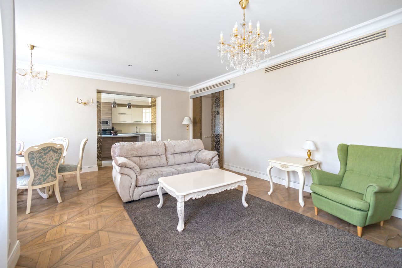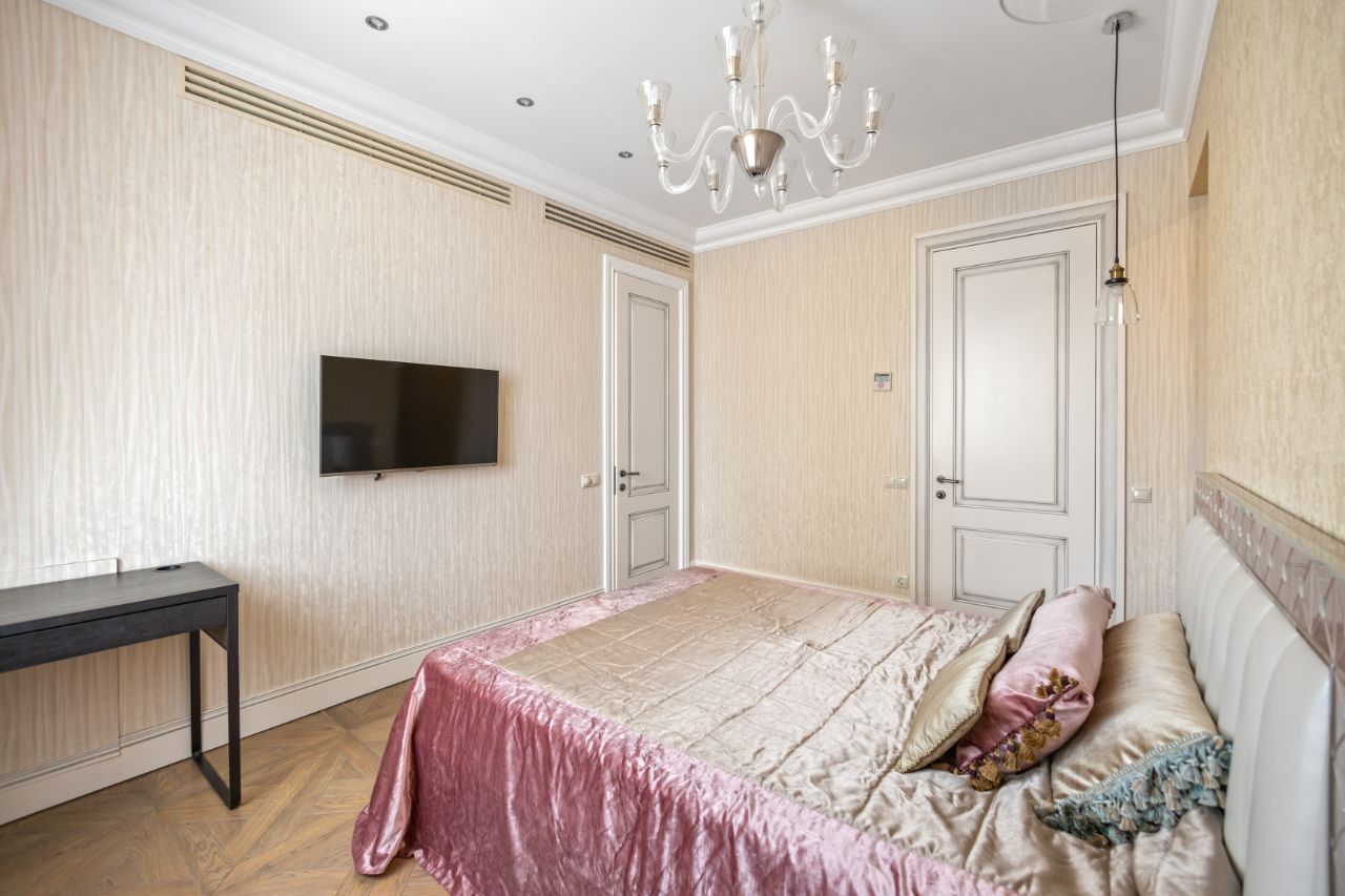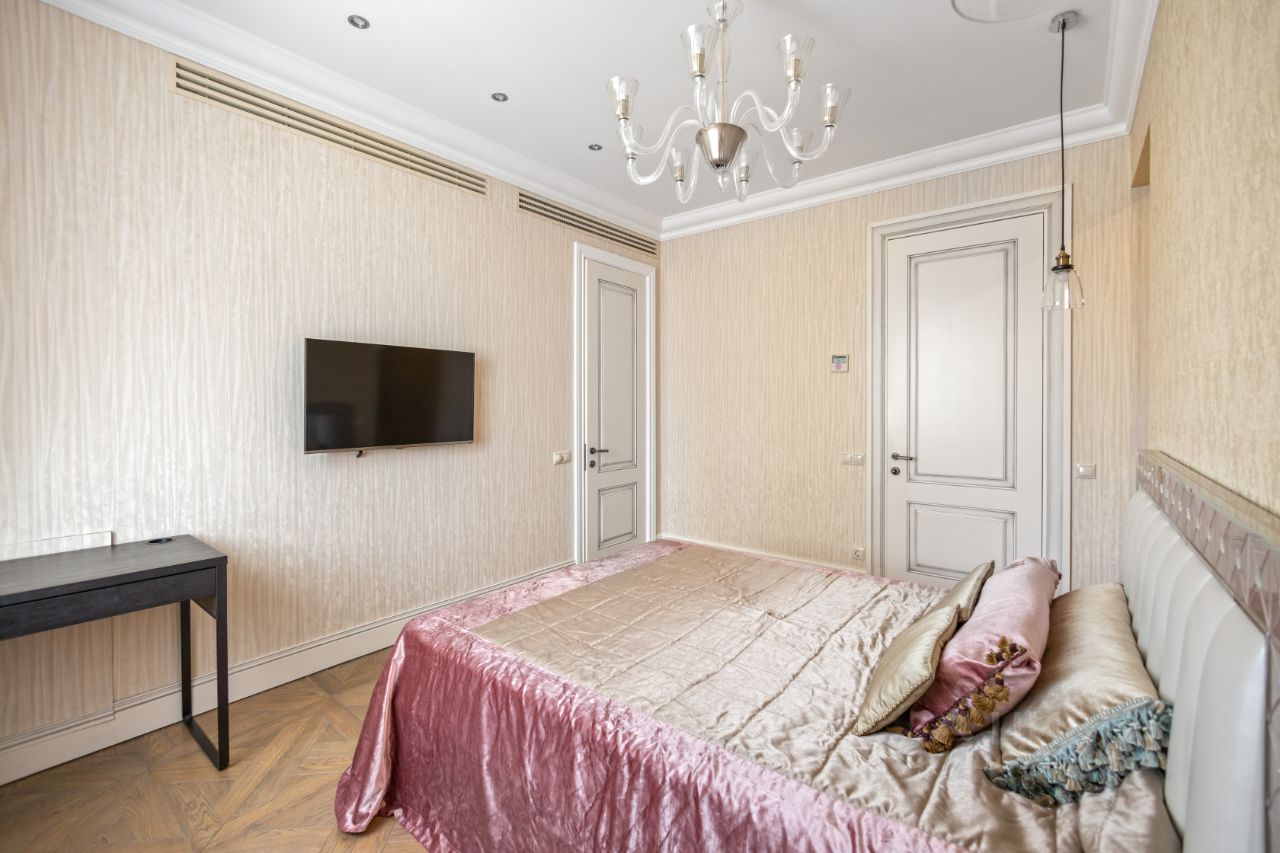Сдается 4-комнатная квартира в ЖК Доминион после косметического ремонта. Выполнен дизайнерский ремонт с использованием натуральных дорогостоящих отделочных материалов. Функциональная планировка: кухня-столовая-гостиная (кухня изолируется стеклянными перегородками) полностью укомплектована всей необходимой, качественной бытовой техникой. Мастер спальня со своим санузлом и гардеробной, вторая спальня со своим санузлом и гардеробной, детская комната с рабочей зоной, гостевой санузел. Есть машиноместо в подземном паркинге.