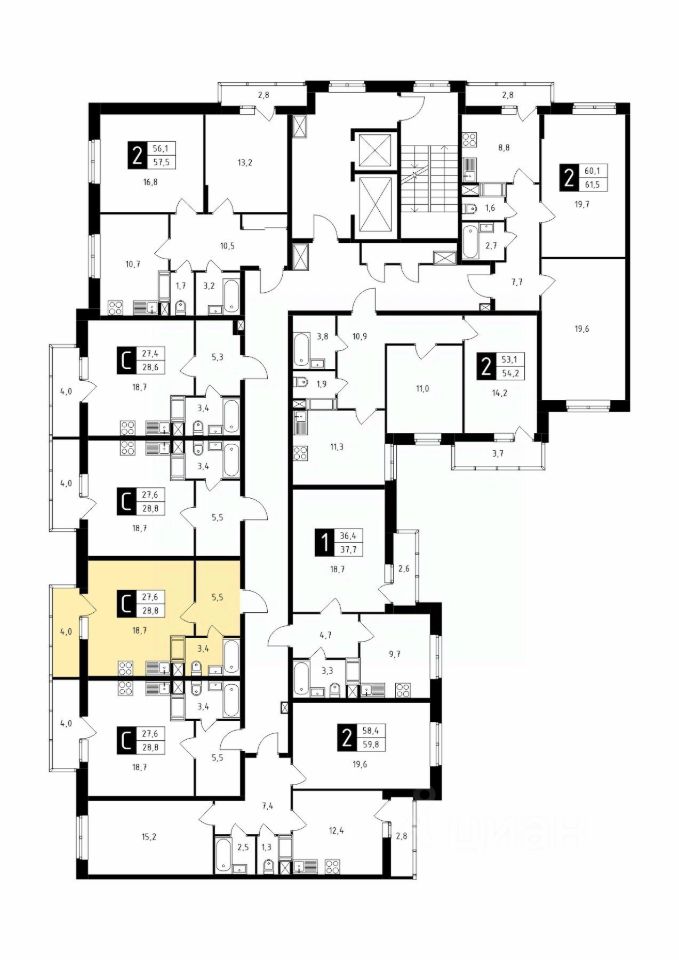 Продаётся студия в строящемся доме (Корпус 1), срок сдачи: 1-кв. 2026, общей площадью 28.90 кв.м., на 2 этаже.