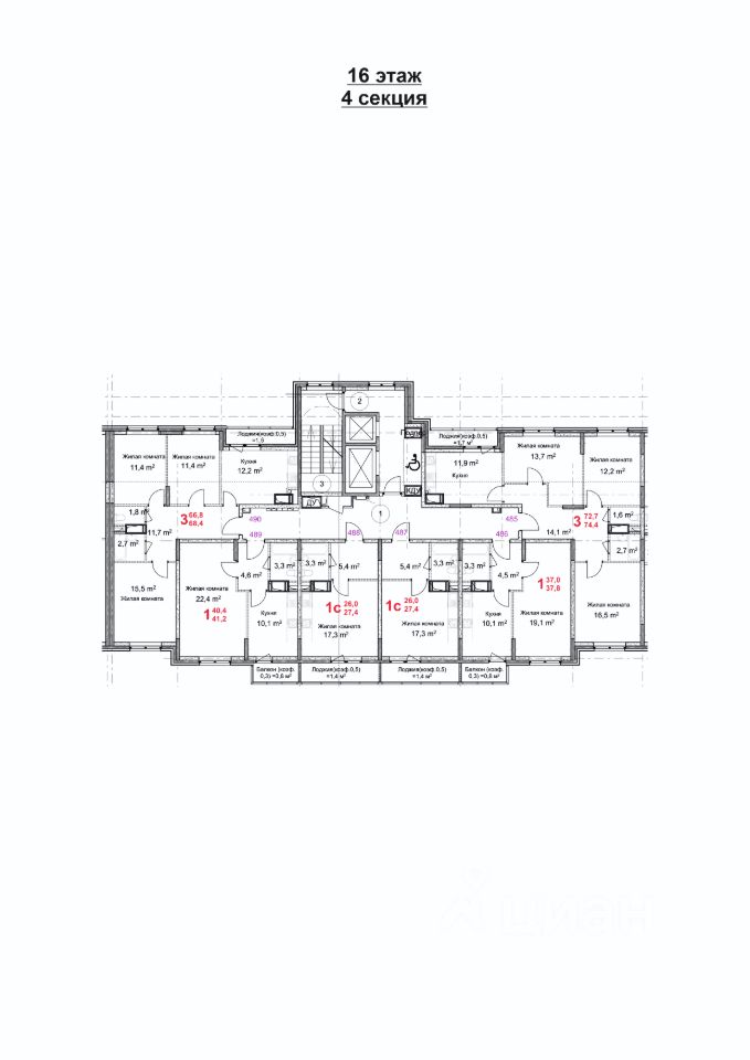 Продаётся студия в строящемся доме (Корпус 1), срок сдачи: 1-кв. 2026, общей площадью 27.40 кв.м., на 16 этаже.