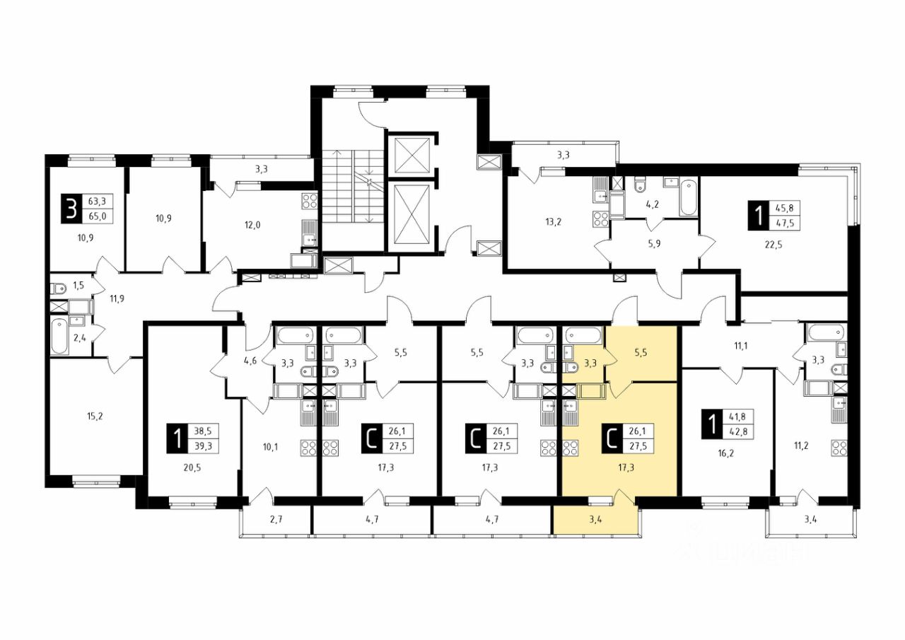 Продаётся студия в строящемся доме (Корпус 1), срок сдачи: 1-кв. 2026, общей площадью 27.10 кв.м., на 17 этаже.