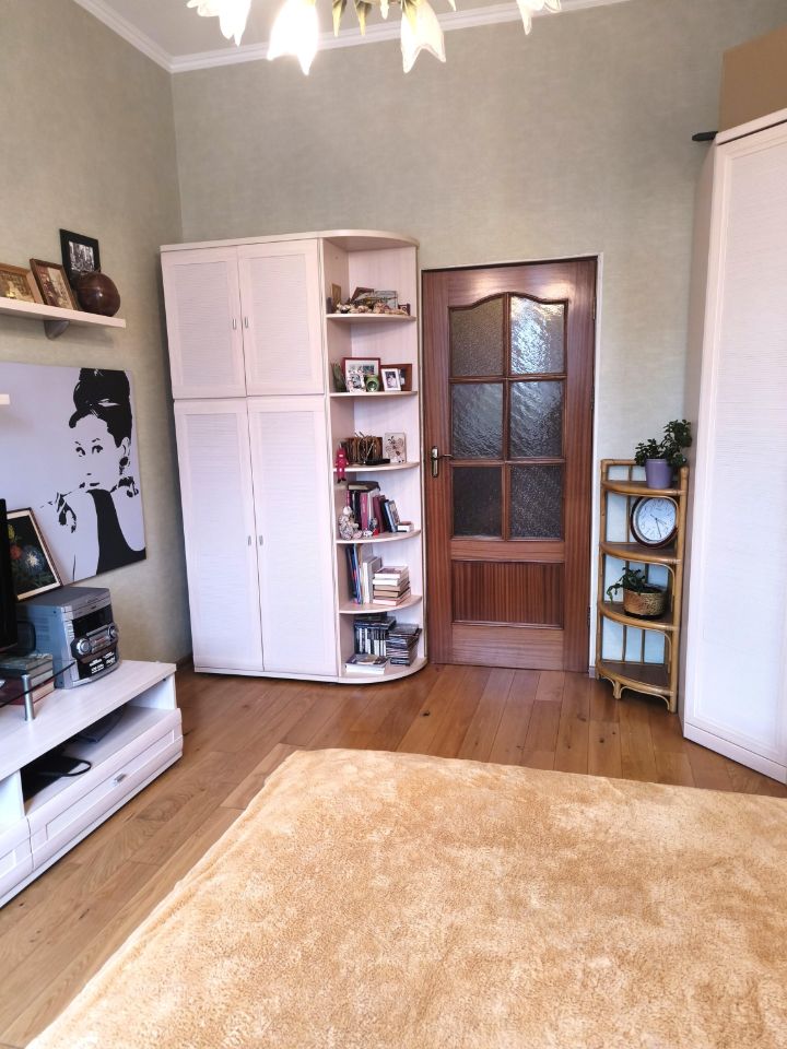 Продается уютная трехкомнатная квартира общей площадью 76.9 кв. м, расположенная на последнем, пятом этаже кирпичного дома. Высокие потолки в 3.2 метра добавляют ощущение простора и света. Хорошая планировка, две комнаты по 15 кв.м. и большой зал 24 кв.м. с балконом. Большая кухня 10 кв.м. и совмещенный санузел 5,2 кв.м. Мебель остается частично. Квартира находится в нескольких минутах ходьбы от метро — всего 12 минут пешком. Дом в хорошем состоянии, с наземной парковкой, что значительно упрощает жизнь автовладельцам. Кирпичный материал постройки обеспечивает отличную тепло- и звукоизоляцию. Рядом с домом находятся все необходимые объекты инфраструктуры: школы, детские сады, клиники и магазины. Это делает район идеальным для семей с детьми. Отличная транспортная доступность позволяет быстро добраться до центра города.