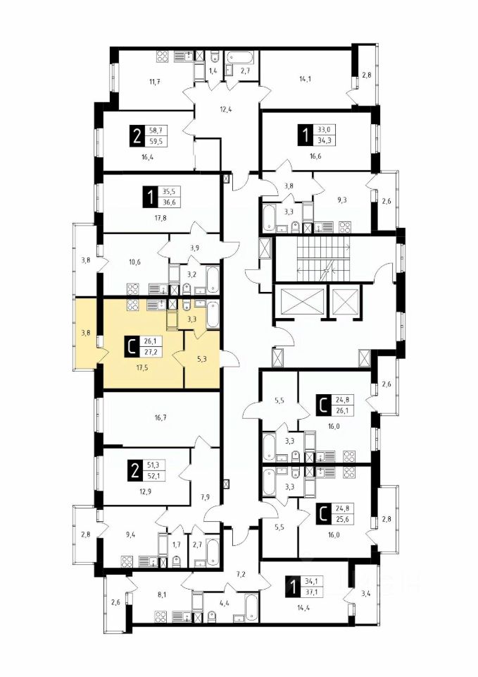 Продаётся студия в строящемся доме (Корпус 1), срок сдачи: 1-кв. 2026, общей площадью 27.20 кв.м., на 13 этаже.