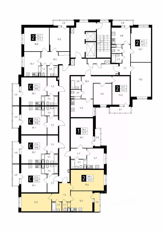 Продаётся 2-комнатная квартира в строящемся доме (Корпус 1), срок сдачи: 1-кв. 2026, общей площадью 59.80 кв.м., на 8 этаже.