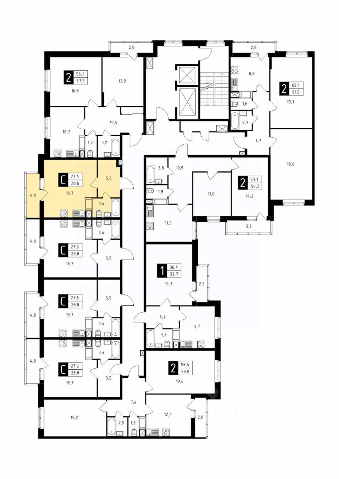 Продаётся студия в строящемся доме (Корпус 1), срок сдачи: 1-кв. 2026, общей площадью 28.60 кв.м., на 6 этаже.