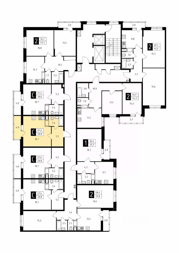 Продаётся студия в строящемся доме (Корпус 1), срок сдачи: 1-кв. 2026, общей площадью 28.80 кв.м., на 7 этаже.