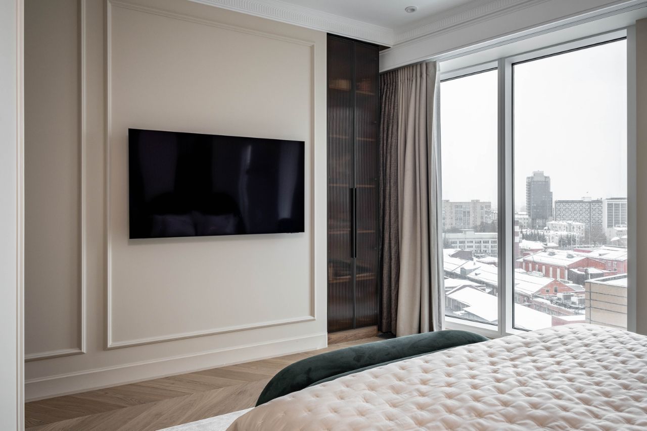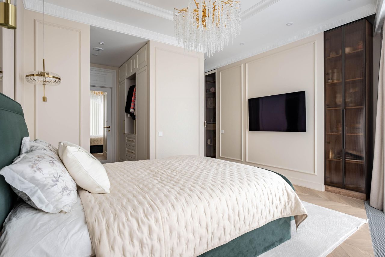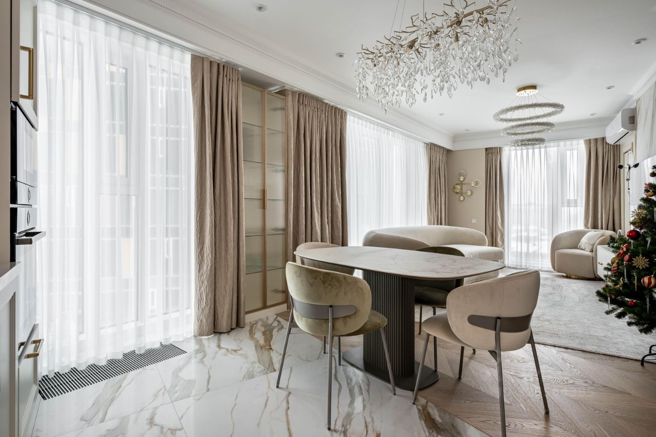 Функциональная планировка квартиры предусматривает просторную кухню-гостинную, мастер спальню, детскую комнату и кабинет с гардеробной зоной и системами хранения, 2 отдельных санузла, просторный холл (по документам 3 комнаты). В квартире произведен новый дизайнерский ремонт в современном стиле. Квартира полностью меблирована и оборудована бытовой техникой (кухня - Bosch и Liebher, стиральная и сушильная машина, плита -Аsko), сплит системы Royal clima, сантехника Villeroy and Bosch, Welt wasser, Tece, Wasser crauf, Grohe, установлены датчики протечек, система фильтрации воды. На полу - инженерная доска, стены под покрас. Мебель выполнена по индивидуальному заказу. Высокий видовой этаж, окна на 2 стороны. Высота потолка 2,9 метров.