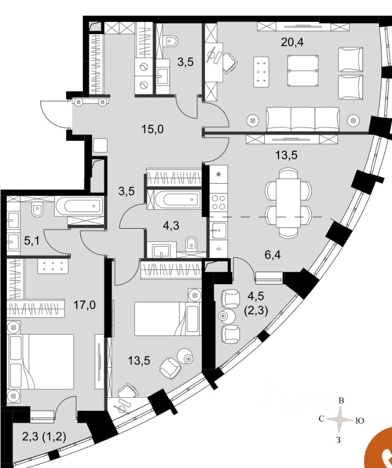 продам 3-к, Сидней Сити ЖК, 2/270 000 000 ₽