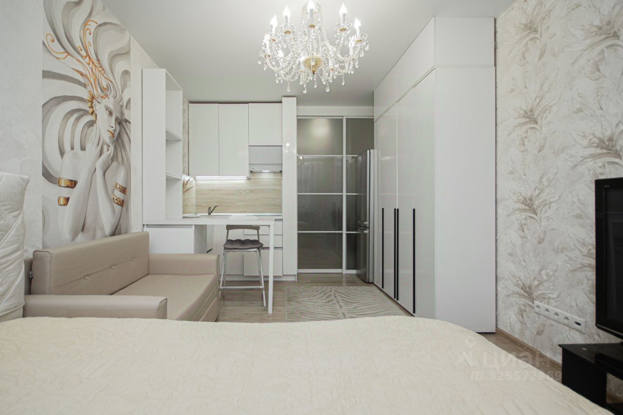 О квартире: Площадь: 25 м² Дом: монолитный, 15 этажей, 3 этаж Ремонт: дизайнерский Планировка: студия с совмещённым санузлом Окна: на улицу Есть вся необходимая мебель и техника для комфортного проживания