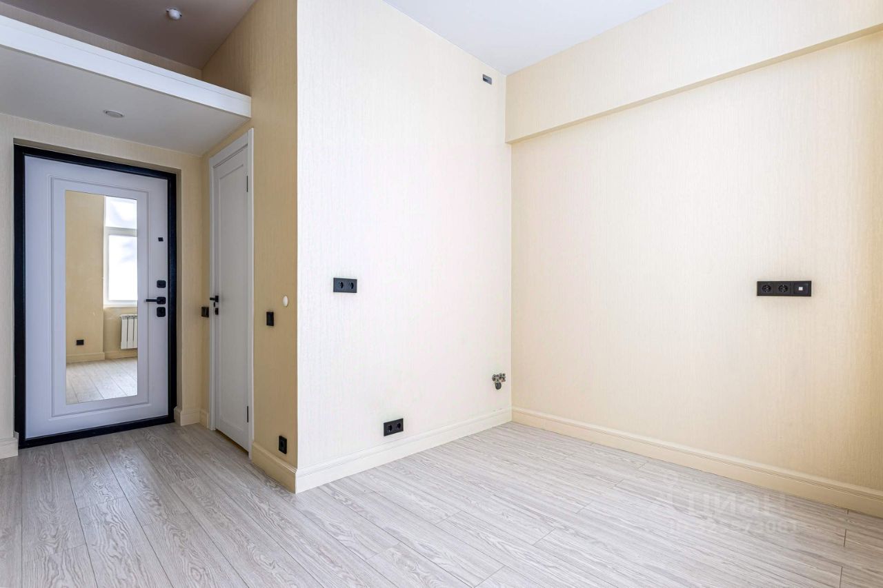 Внутри сделан современный и стильный евроремонт с использованием материалов высокого качества. На полу постелен ламинат, на стенах поклеены светлые обои. Высота потолков — 3 метра.