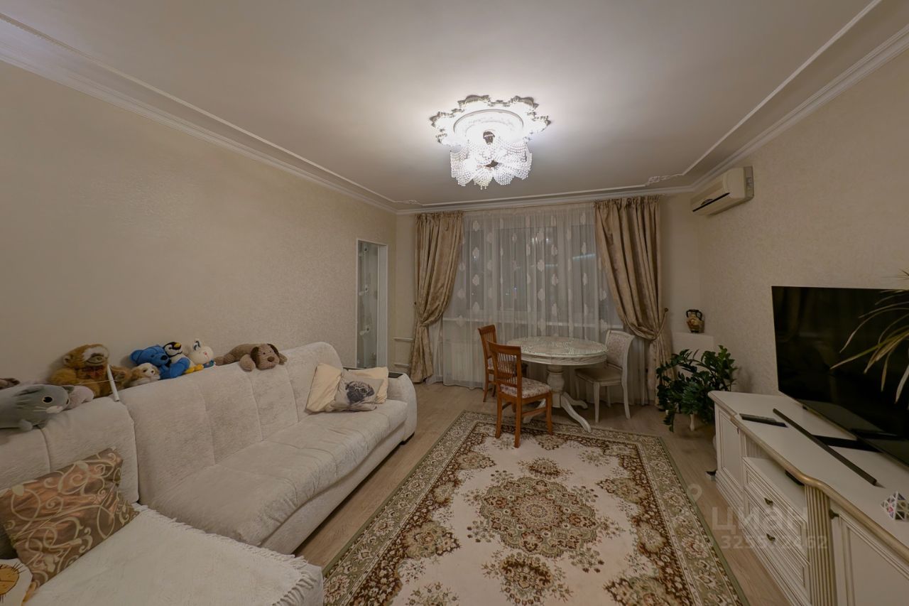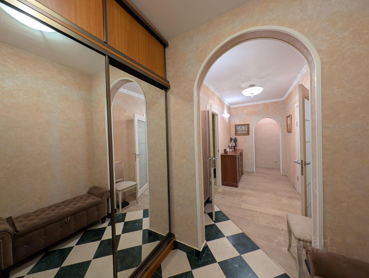 Всего 2 квартиры на этаже! Комнаты в квартире распашного расположения, т.е. на две стороны. Общая площадь квартиры без учета лоджии 77,5 м2. Три комнаты, в одной из комнат имеется гардеробная (на фото с зеркальными дверцами), санузел совмещенный. В квартире выполнен качественный ремонт с заменой всех труб и коммуникаций в 2014 году. В каждой комнате установлены кондиционеры.