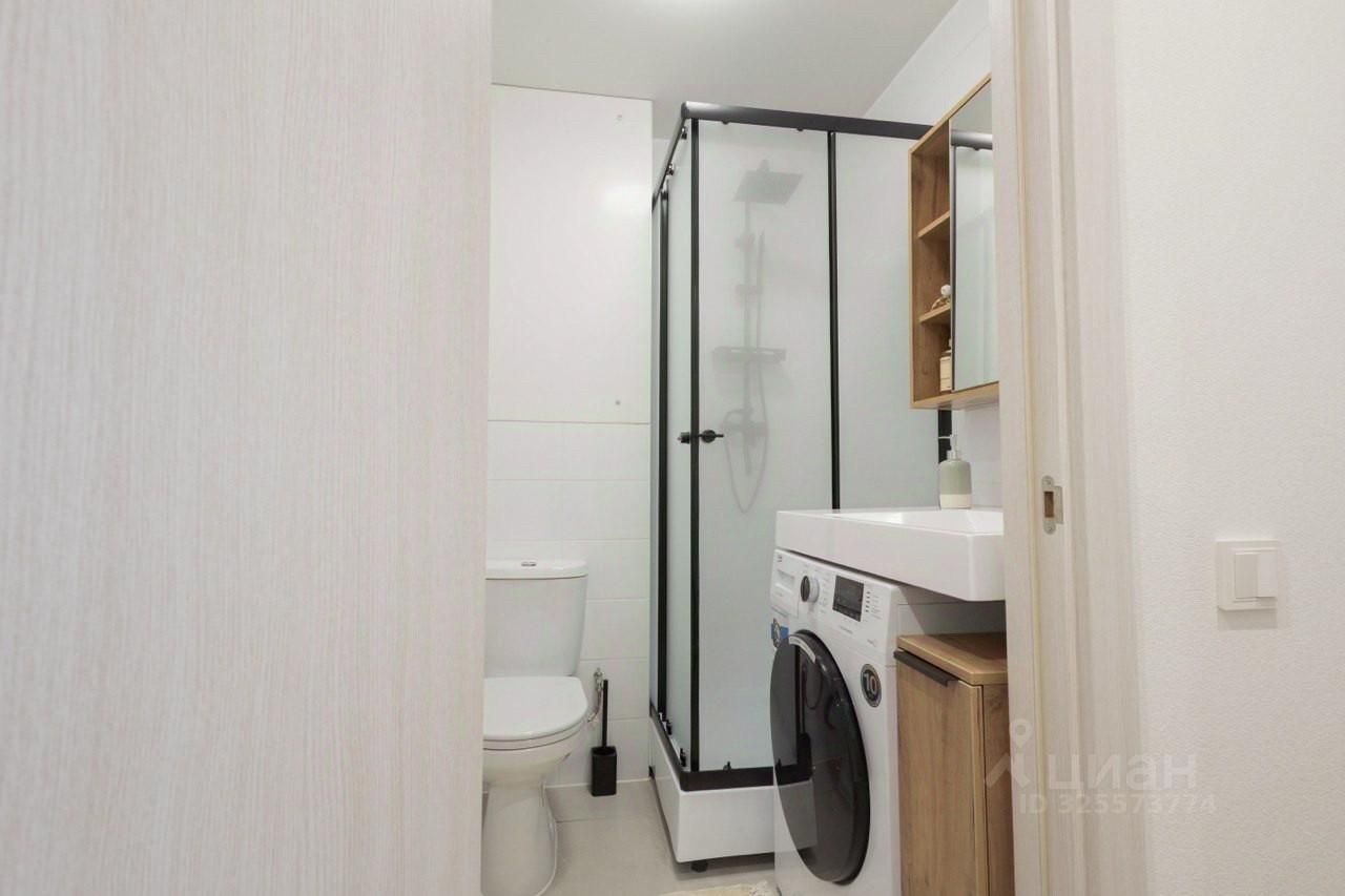 Ванная комната совмещенная, оснащена душевой кабиной и стиральной машиной. В прихожей установлен удобный шкаф для хранения вещей. В квартире есть кондиционер для комфортного проживания в любое время года.