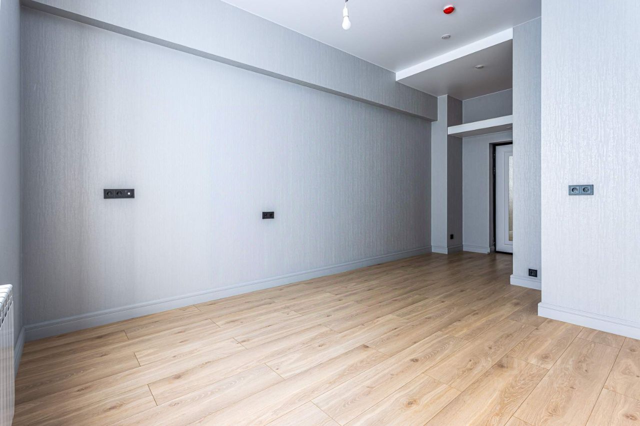 Внутри сделан современный и стильный евроремонт с использованием материалов высокого качества. На полу постелен ламинат, на стенах поклеены светлые обои. Высота потолков — 3 метра.