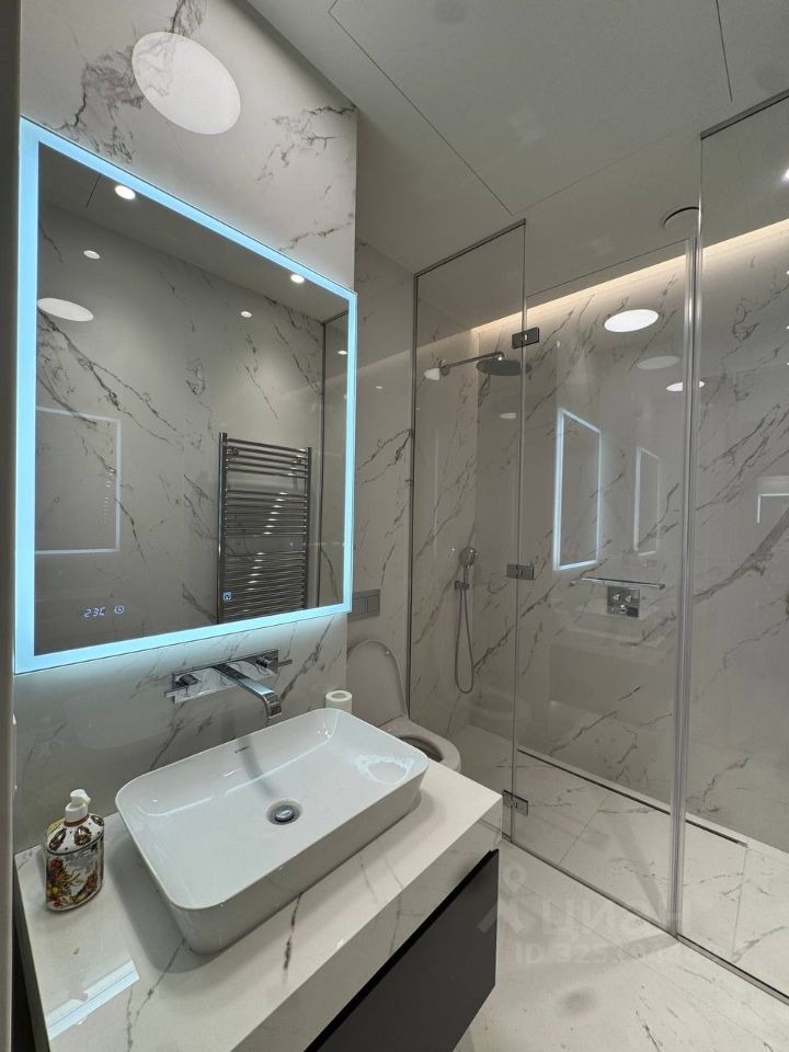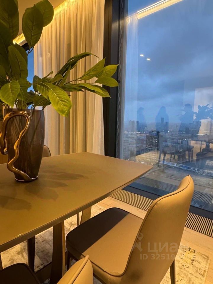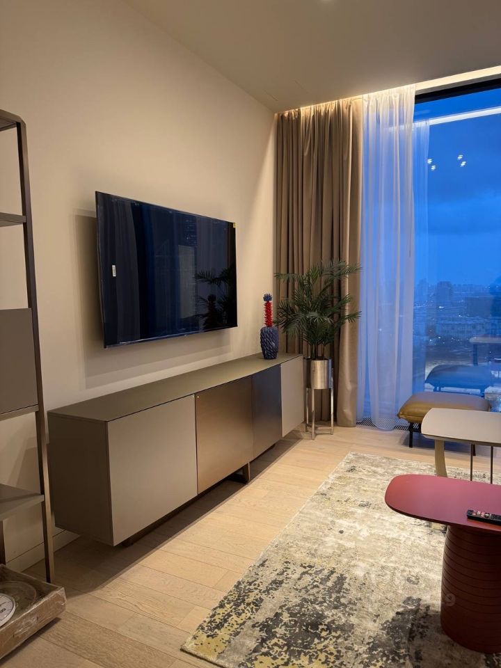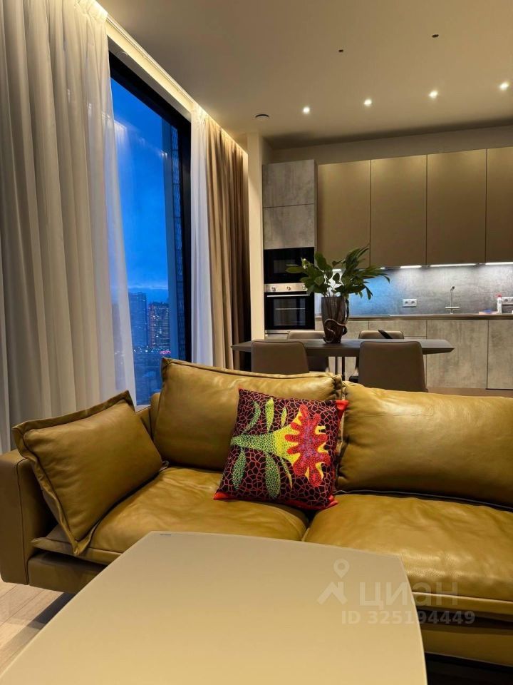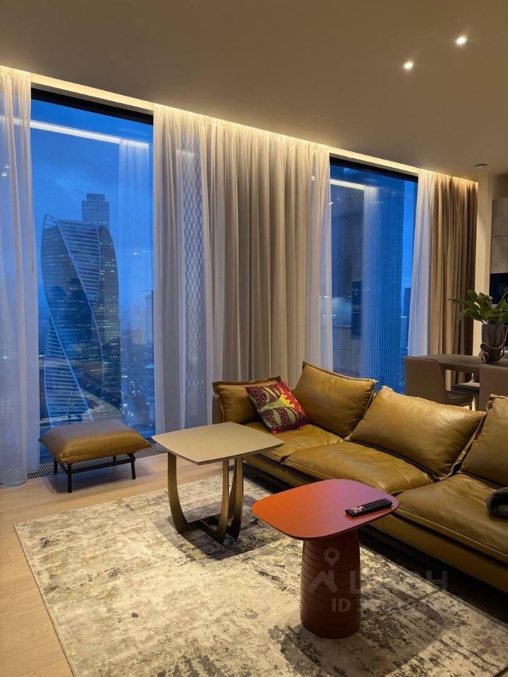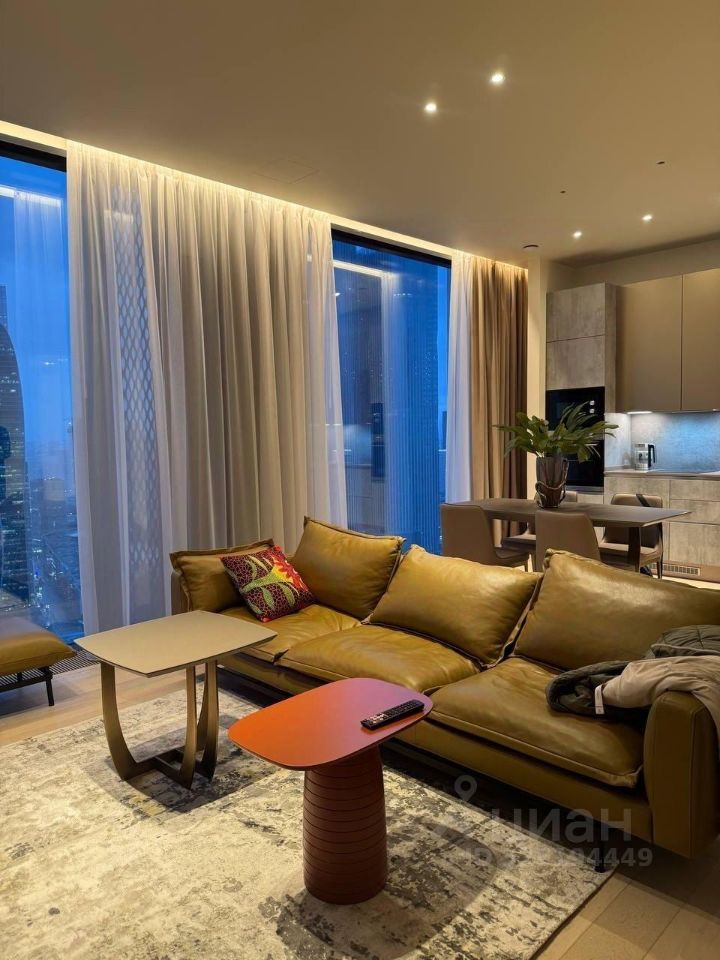 Сдается в аренду стильная двухкомнатная квартира с дизайнерским ремонтом в престижном районе Москва-Сити. Общая площадь — 80 кв. м, жилая площадь — 55 кв. м, кухня — 15 кв. м. Квартира расположена на 36-м этаже современного 69-этажного панельного дома, построенного в 2023 году. Из окон открывается вид на улицу.