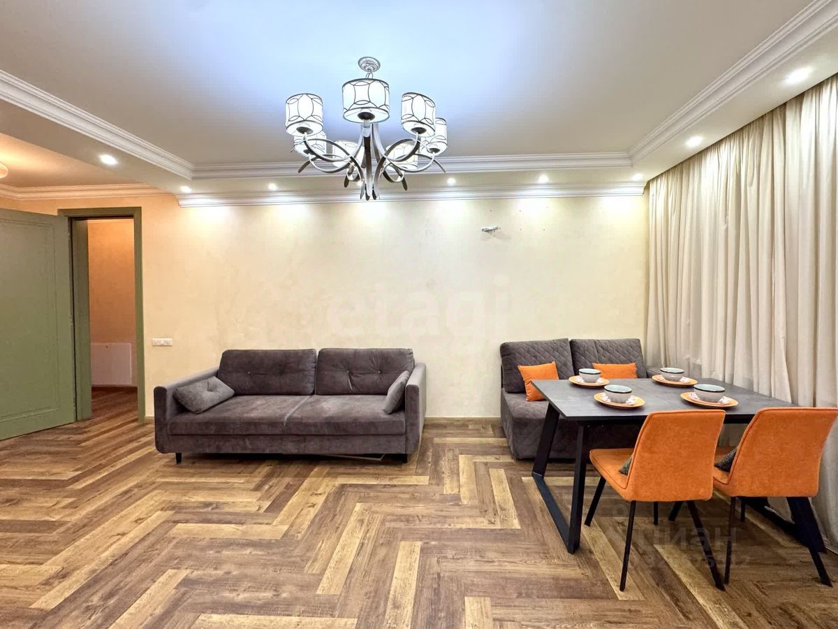 3-комнатная квартира общей площадью 81.2 кв м, включает кухонную зону 20 кв м. Качественный новый ремонт, светлые комнаты. Одна из комнат переориентирована в просторную кухню-гостиную (перепланировка узаконена). В квартире почти не жили, никогда не сдавалась. Мебель и техника в отличном состоянии. Окна выходят как на двор (детский сад), так и на улицу. Фасад с улицы дополнительно утеплен, поэтому квартира очень теплая. Также установлен теплый пол.