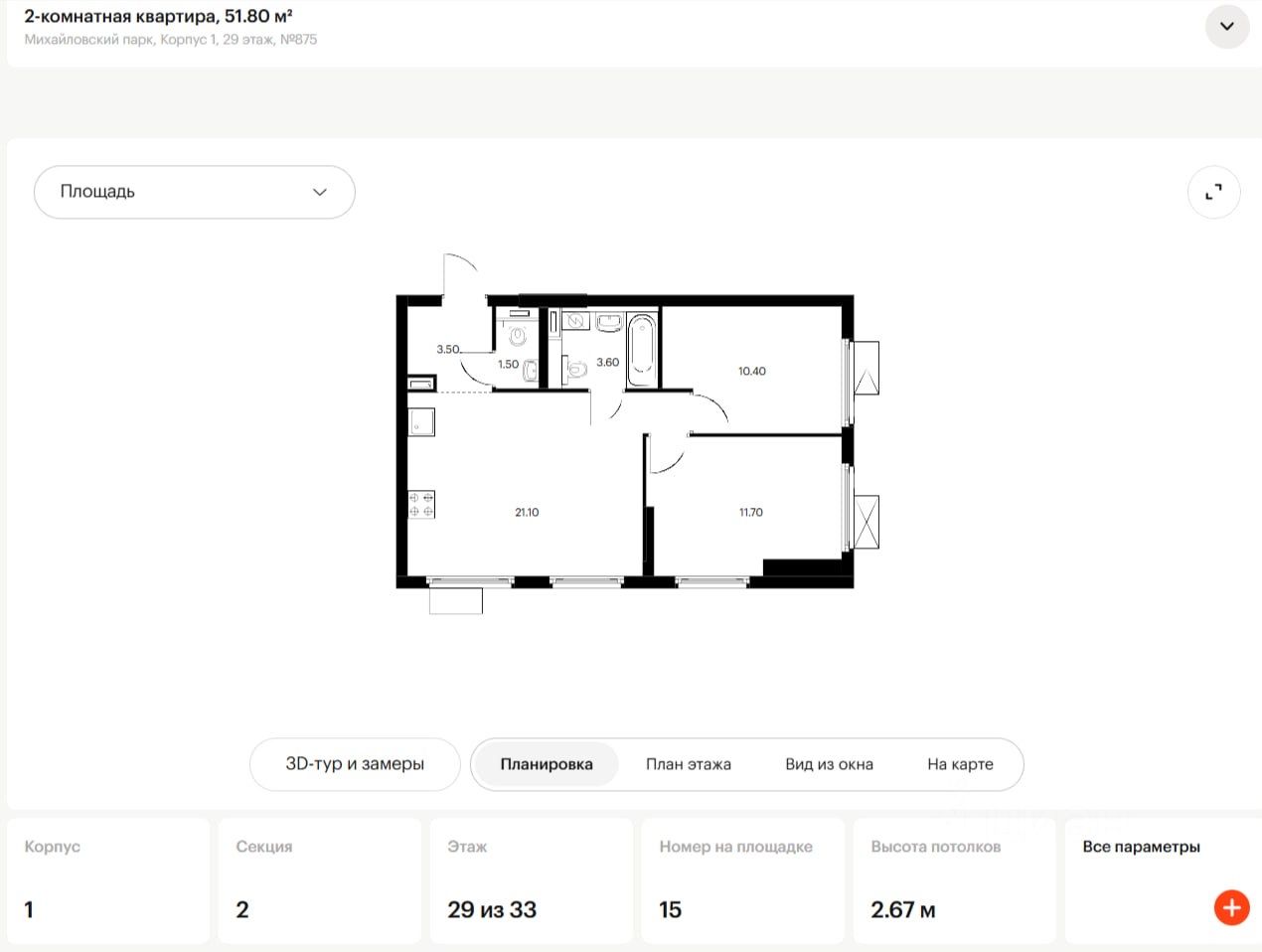 продам 2-к, Михайлова, 30а корп. 220 500 000 ₽