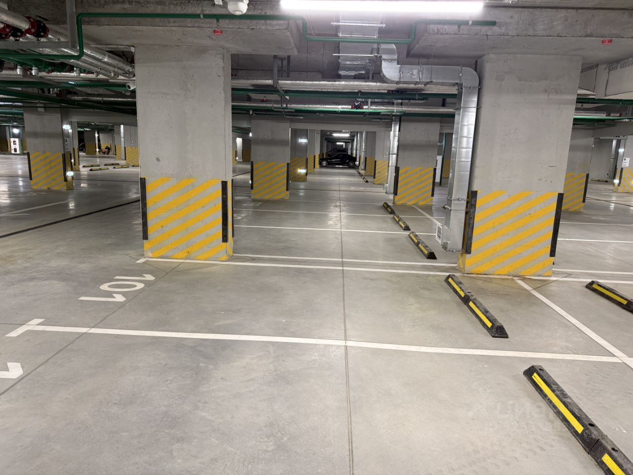 Коммуникаций над машино-местом нет, только система пожаротушения.