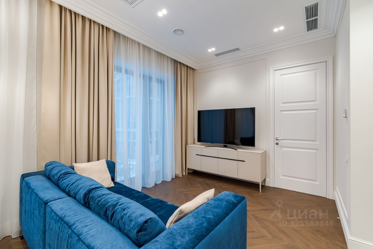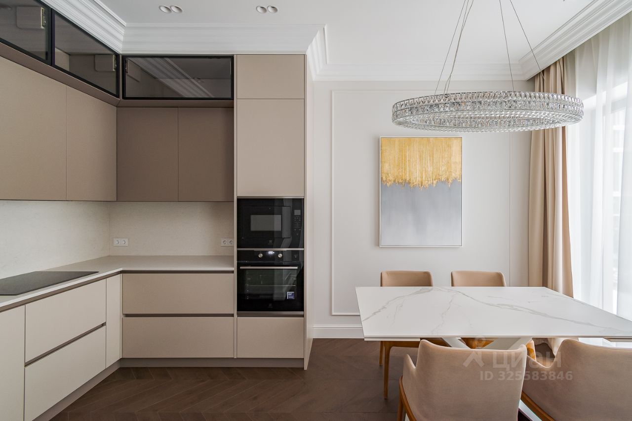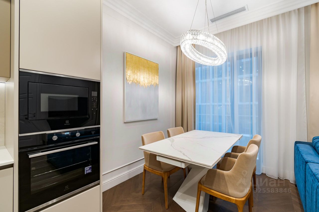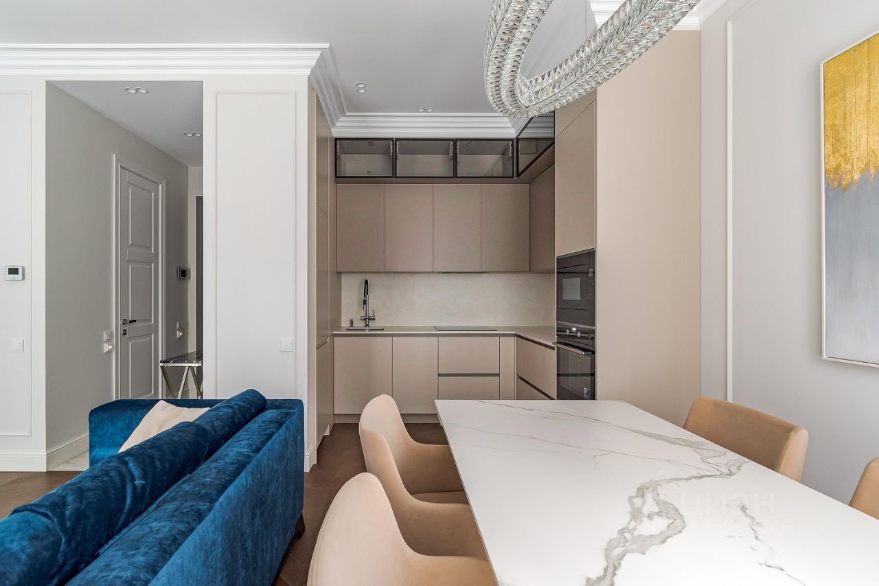 Апартамент грамотно спланирован: отдельная спальня со своей гардеробной комнатой, большая кухня-гостиная с двумя окнами в пол, совмещенный санузел с душевой кабиной и прихожая с теплыми полами. Приточно-вытяжная система кондиционирования, встроенный кухонный гарнитур со всей необходимой техникой: холодильник, посудомойка, духовой шкаф и СВЧ печь, индукционная варочная панель. В санузле стиральная и сушильная машина шведского производителя премиум-класса Asko, качественная сантехника из магазина Maxlevel, в гостиной большой телевизор LG Qned 65 дюймов. Вся мебель сделана на заказ у ведущих производителей, массивные двери высотой 2.5м, на полу инженерная доска Finex (раскладка французская елка).