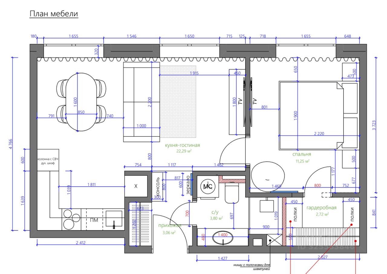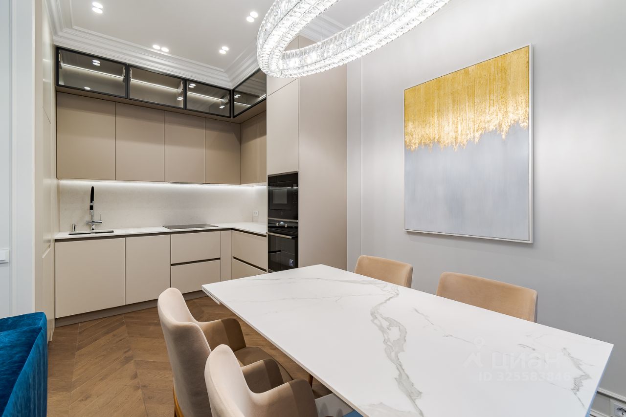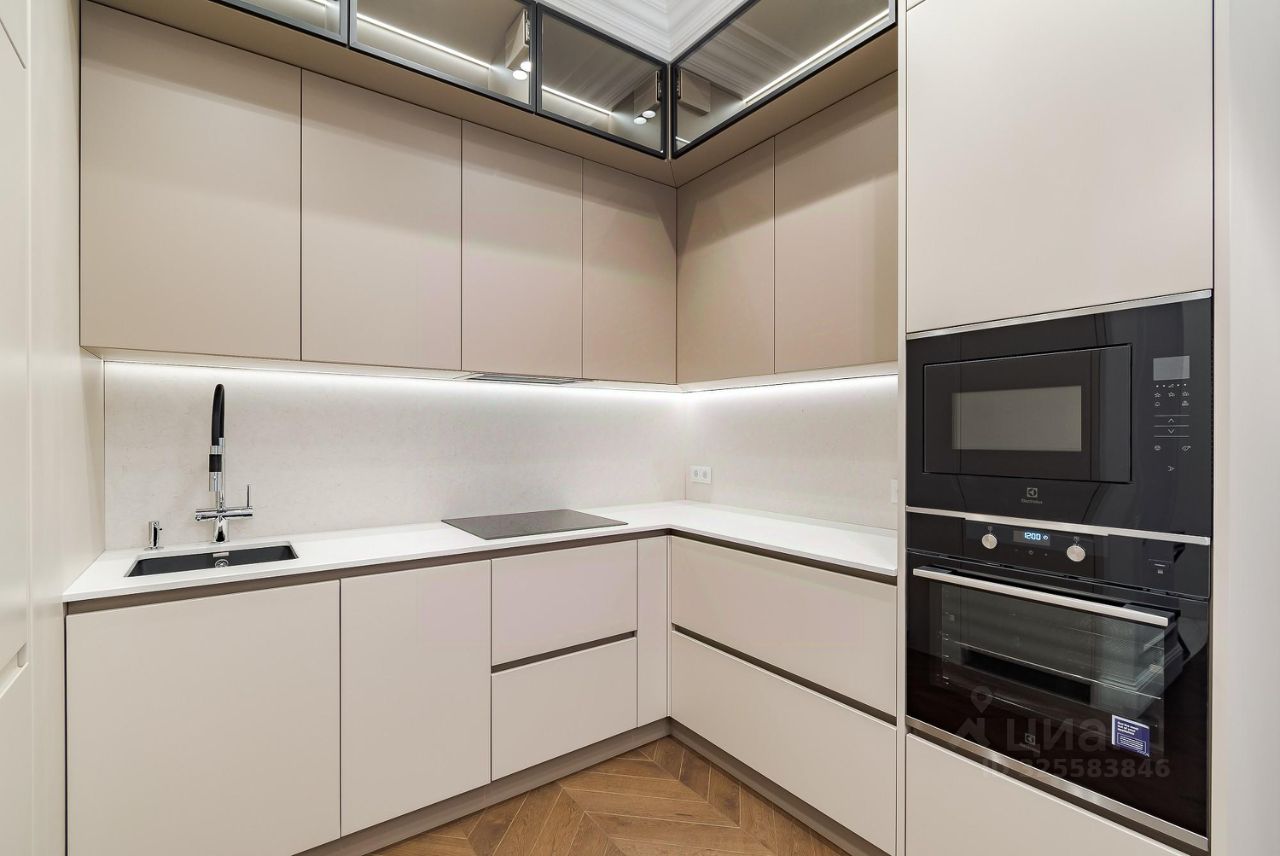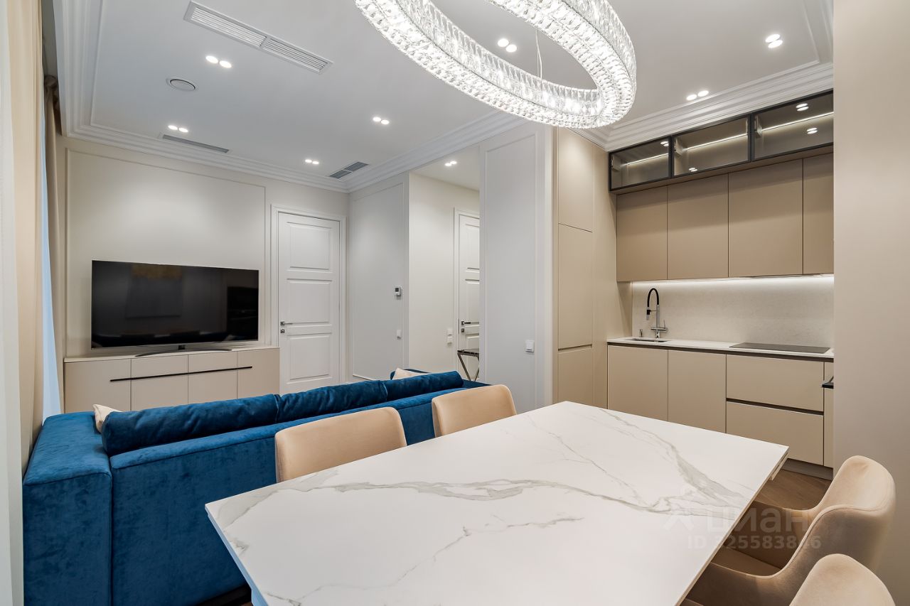 Апартамент грамотно спланирован: отдельная спальня со своей гардеробной комнатой, большая кухня-гостиная с двумя окнами в пол, совмещенный санузел с душевой кабиной и прихожая с теплыми полами. Приточно-вытяжная система кондиционирования, встроенный кухонный гарнитур со всей необходимой техникой: холодильник, посудомойка, духовой шкаф и СВЧ печь, индукционная варочная панель. В санузле стиральная и сушильная машина шведского производителя премиум-класса Asko, качественная сантехника из магазина Maxlevel, в гостиной большой телевизор LG Qned 65 дюймов. Вся мебель сделана на заказ у ведущих производителей, массивные двери высотой 2.5м, на полу инженерная доска Finex (раскладка французская елка).