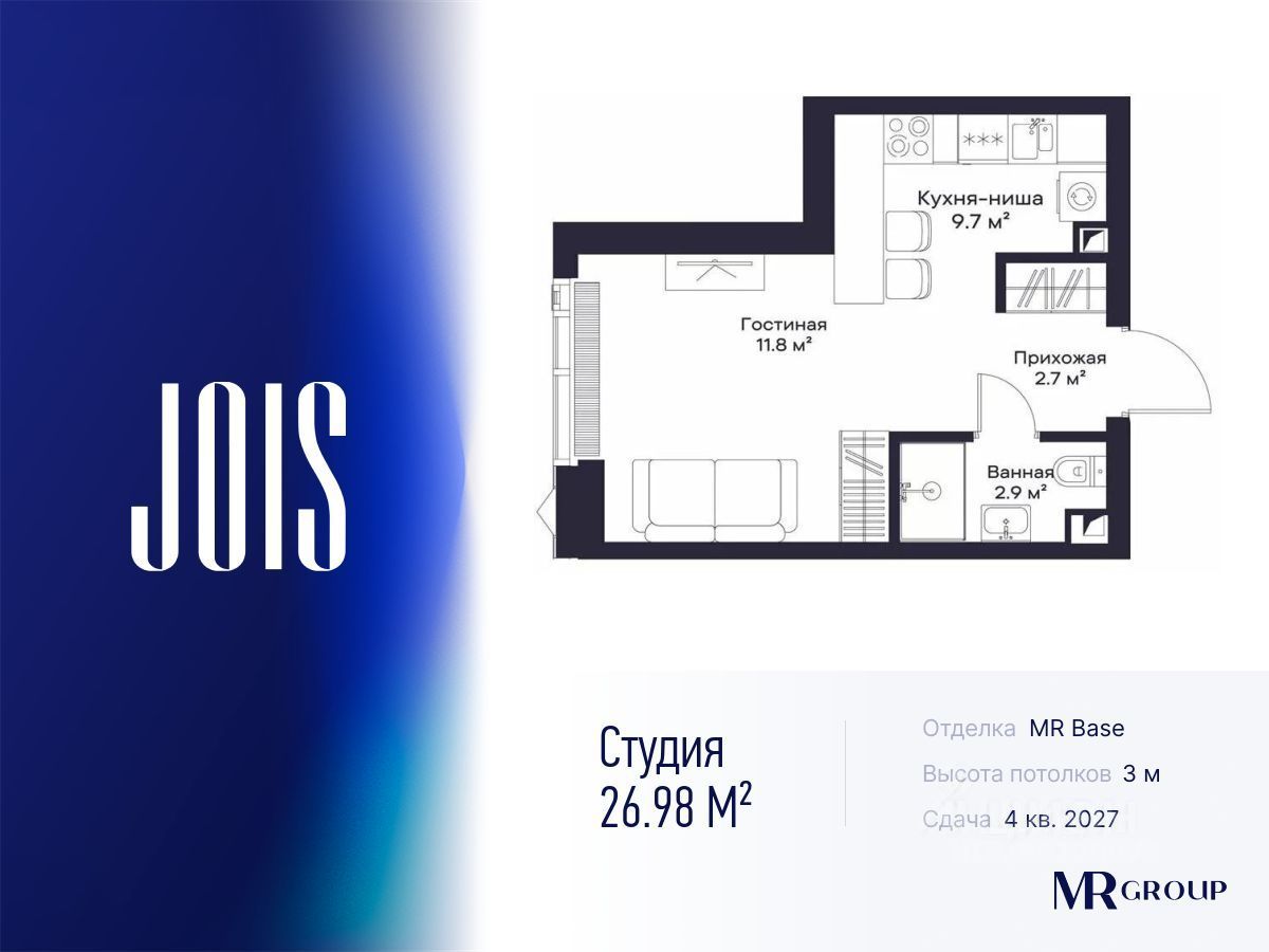 По переуступке от физического лица продается квартира площадью 26,98 кв.м. с предчистовой отделкой (MR Base) на 40 этаже.