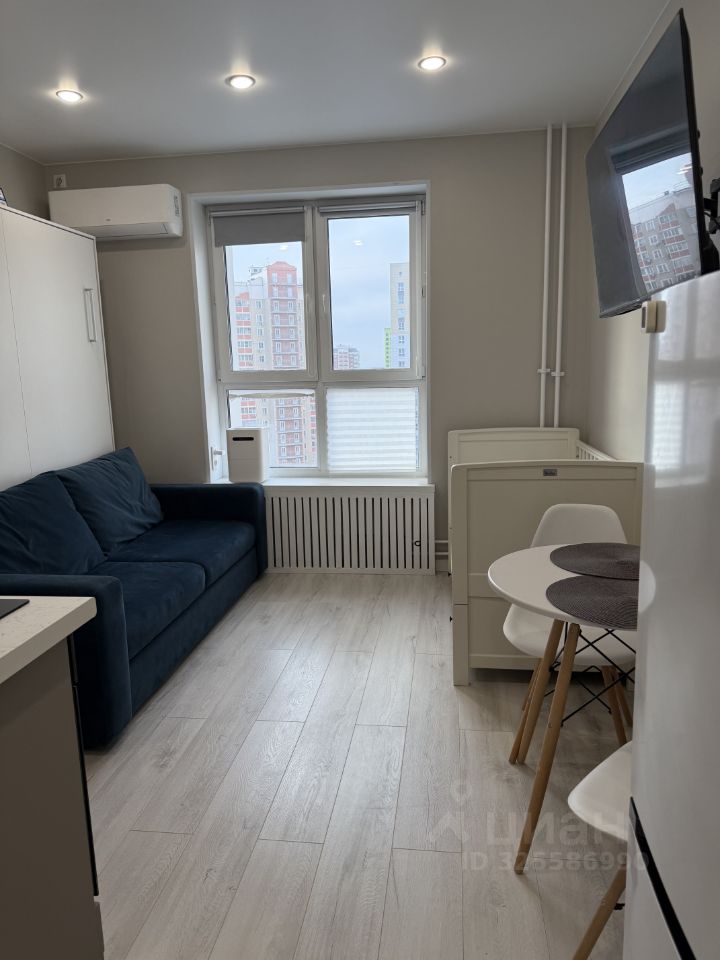 Квартира студия. Светлая, со всей необходимой техникой: стиральная машина с функцией сушки, посудомоечная машина, кондиционер, холодильник, духовка, микроволновка, индукционная плита, диван трансформер - в собранном виде диван, а если опустить основание, то получится полноценная кровать с матрасом размера 180х200.