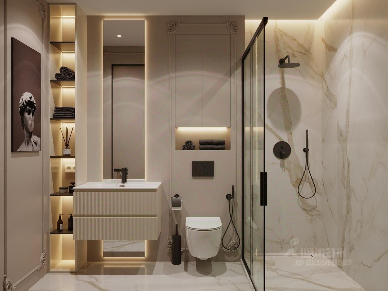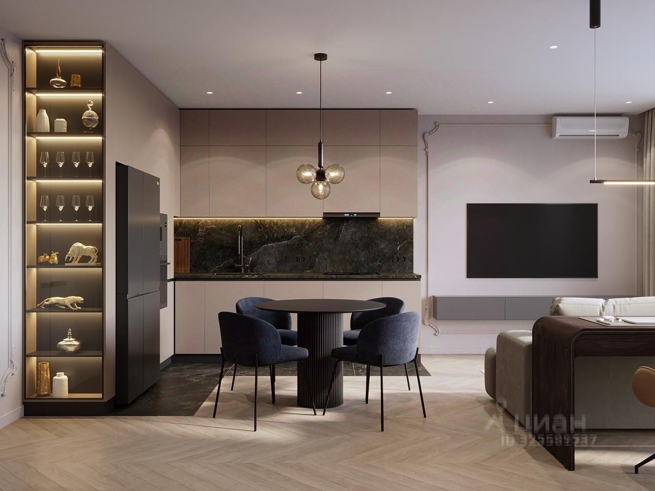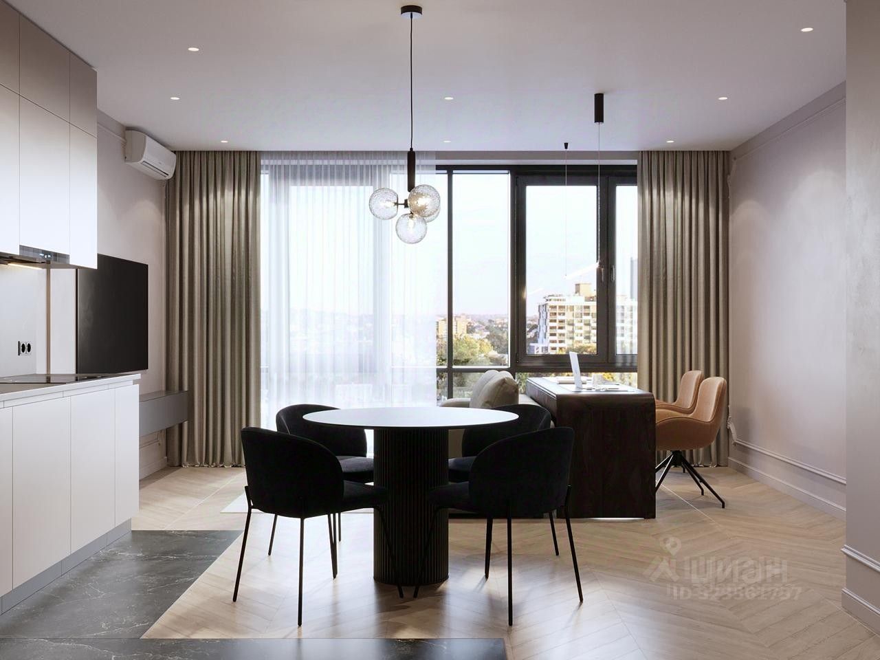 Первый фотографии - рабочая визуализация квартиры из дизайн проекта. Дизайн проект полноценный с визуализациями и комплектацией, все чертежи рабочие, по ним производился ремонт (черновые работы). Передадим с квартирой.
