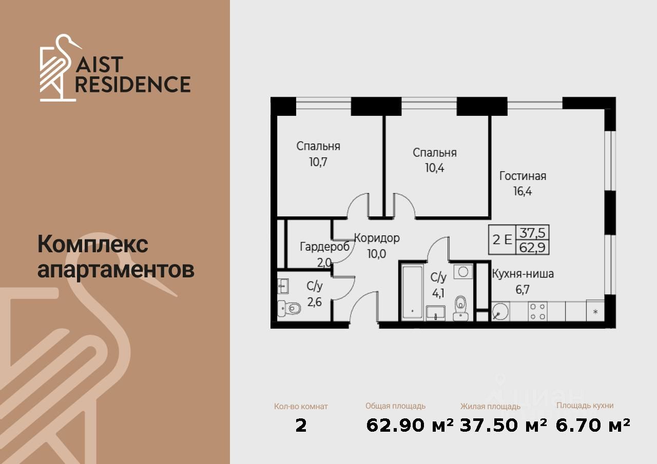 Общая площадь62,9 м2
