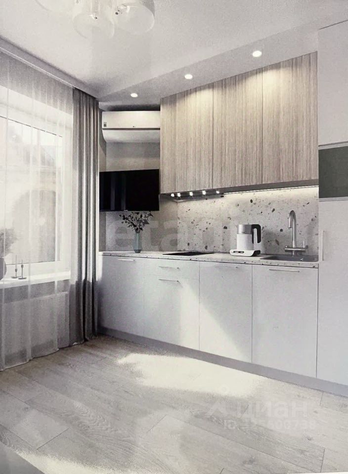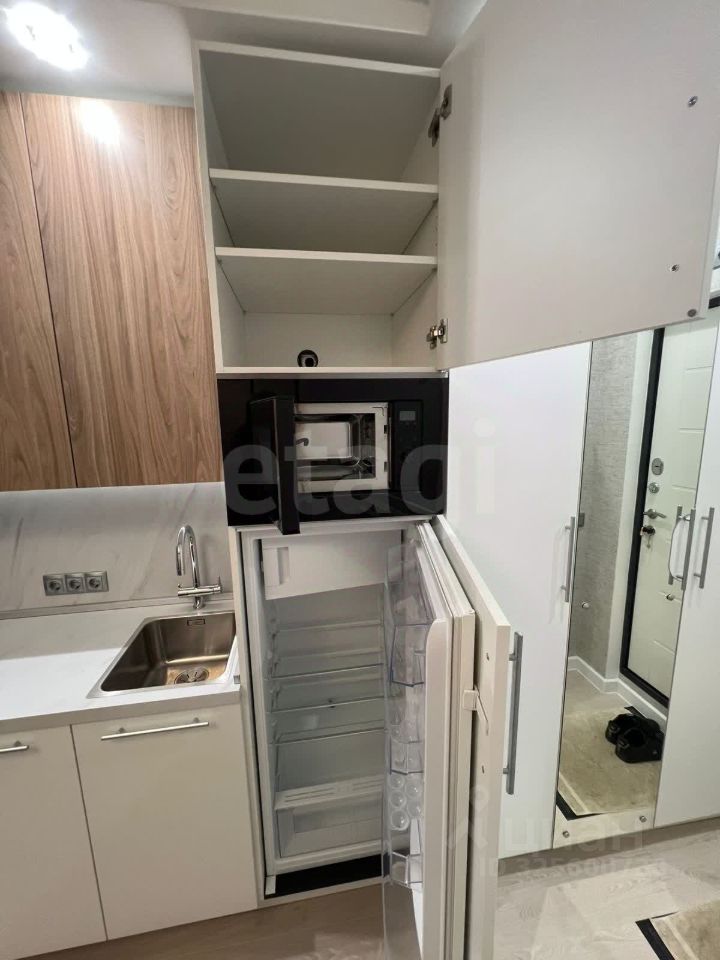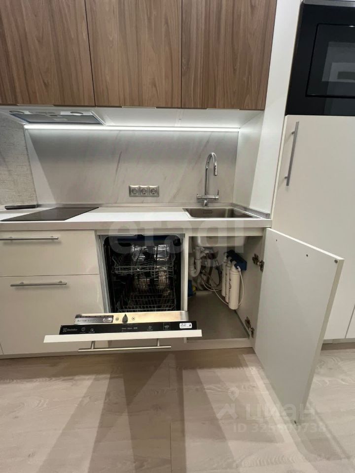 В кухне имеется встроенная бытовая техника: двухкамерный холодильник, двух комфорочная электрическая панель, вытяжка, система фильтрации воды, посудомоечная машина, микроволновая печь, телевизор и интернет. В прихожей имеется большой трехстворчатый шкаф с зеркалом.