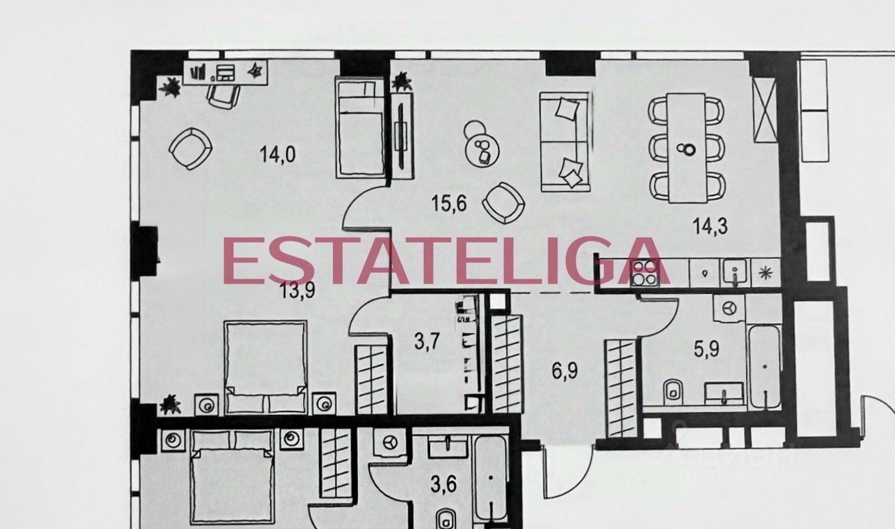 Id 59591. ПРОСТОРНАЯ КВАРТИРА, 3 панорамных окна в комнате, система УМНЫЙ ДОМ, управление через Алису.