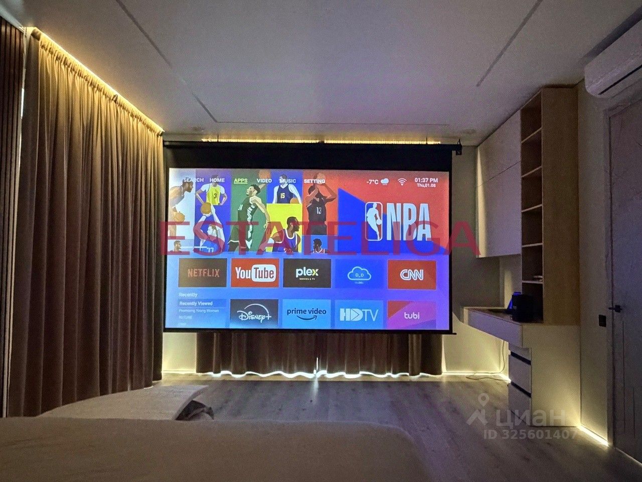 В спальне предусмотрена встроенная потолочная акустика и проектор. По всей квартире реализована система ''Умный дом'', установлен скрытый плинтус с подсветкой. Использованы качественные материалы, электрика полностью заменена.