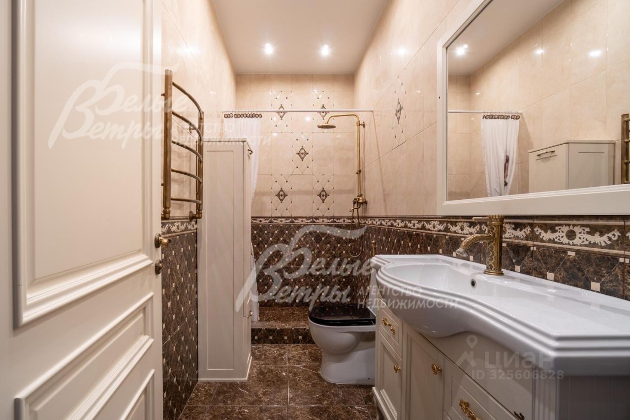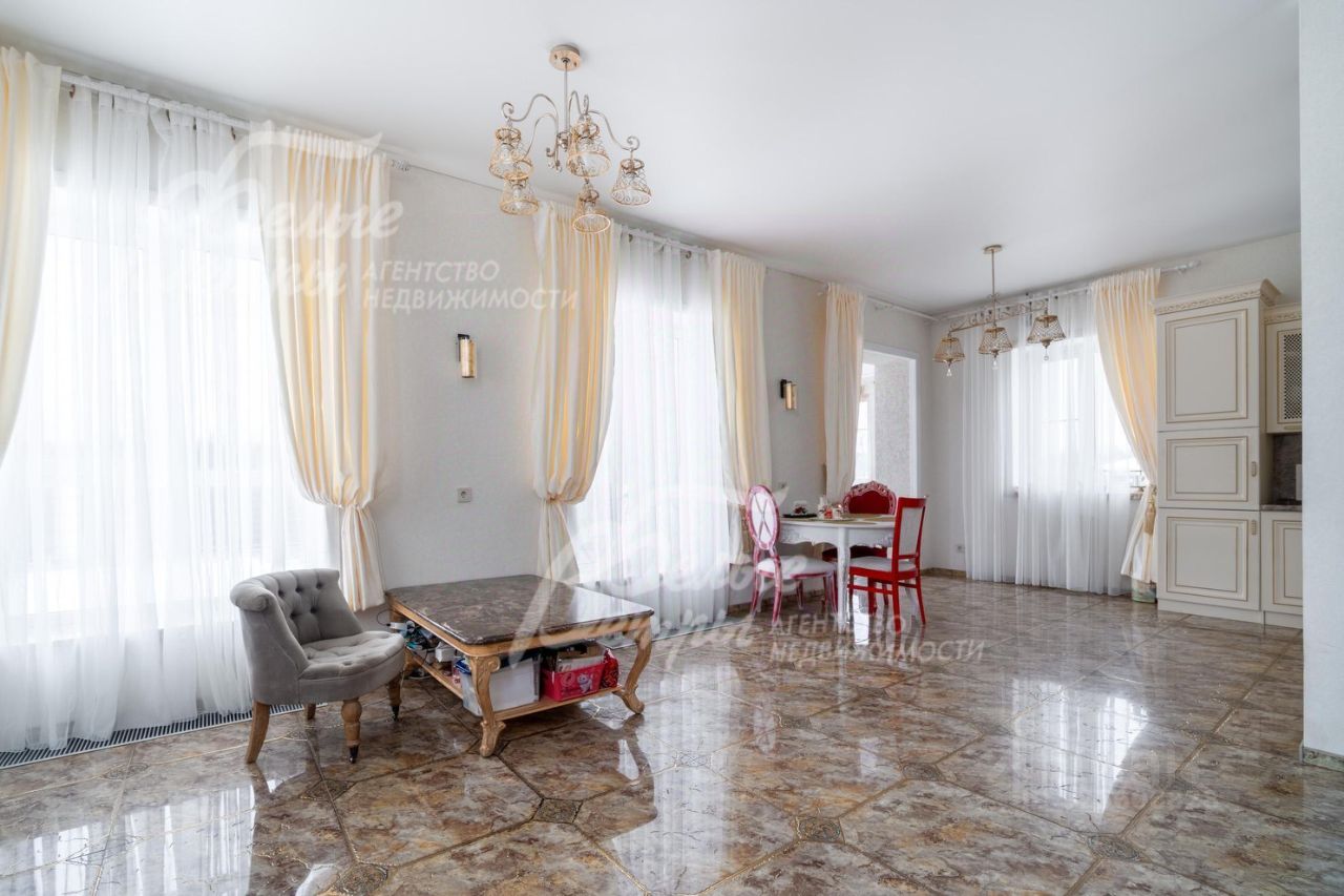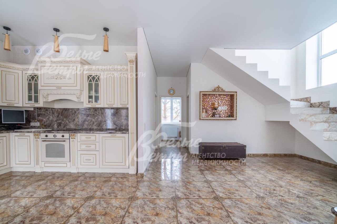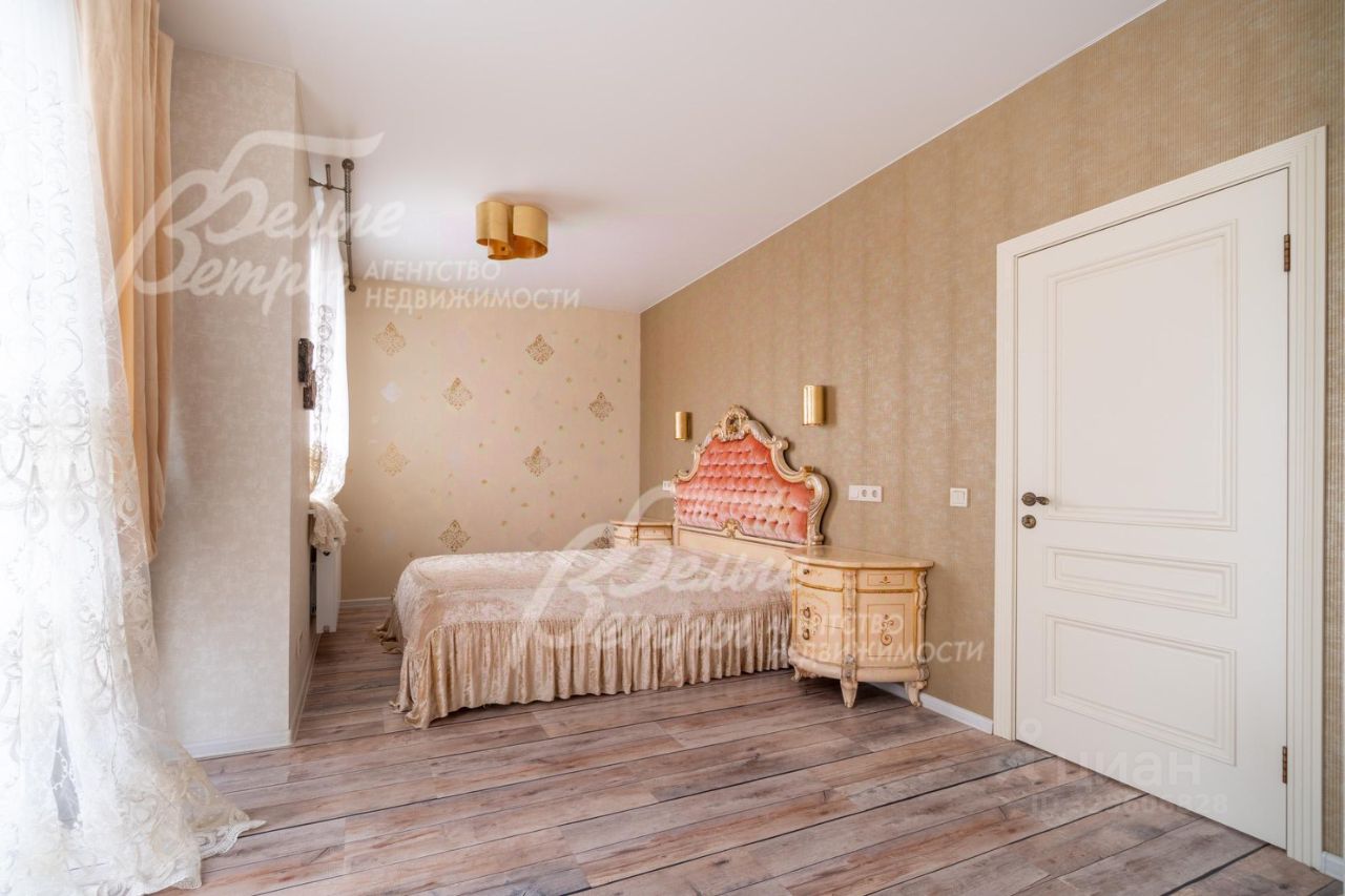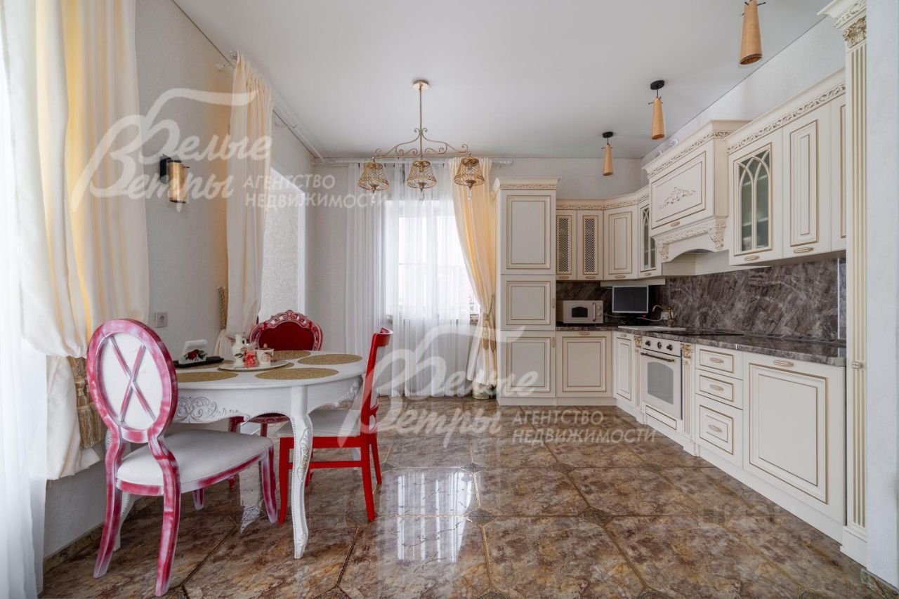 Мебель, оборудование: дом полностью меблирован и укомплектован бытовой техникой. На кухне установлен отечественный кухонный гарнитур в стиле ''Прованс'': фасады выполнены из МДФ, столешница — из искусственного камня. Столовая зона оборудована гарнитуром белорусского производства. В жилых помещениях размещена деревянная мягкая мебель итальянского бренда Giorgio Casa. В спальнях установлены спальные гарнитуры той же марки. Санузлы оснащены сантехникой: гигиеническим и верхним душем Cezares Margot, смесителями Grohe, душевым гарнитуром Ideal Standard.