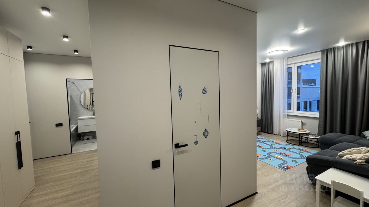 В спальнях установлены вместительные шкафы и кровати, одна из спален оборудована детской кроваткой. Ванная комната выполнена в современном стиле с качественной сантехникой.
