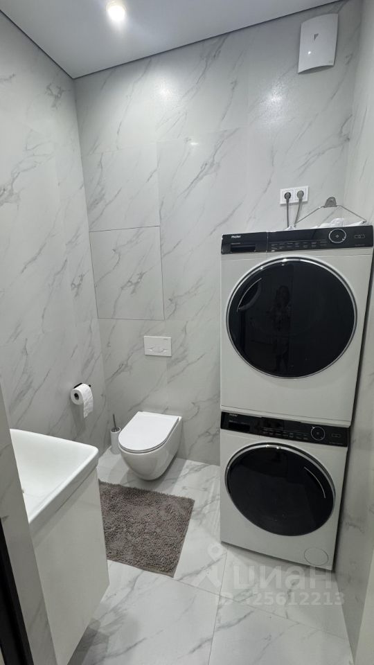 В спальнях установлены вместительные шкафы и кровати, одна из спален оборудована детской кроваткой. Ванная комната выполнена в современном стиле с качественной сантехникой. Второй санузел оснащен стиральной и сушильной машиной