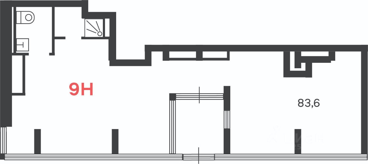 Формат: свободная планировка, open space Тип входа: отдельный с улицы Расположение: угловое, витрины на две стороны фасада Окна: большие витринные, вдоль красной линии дома Санузел и техзона предусмотрены на планировке