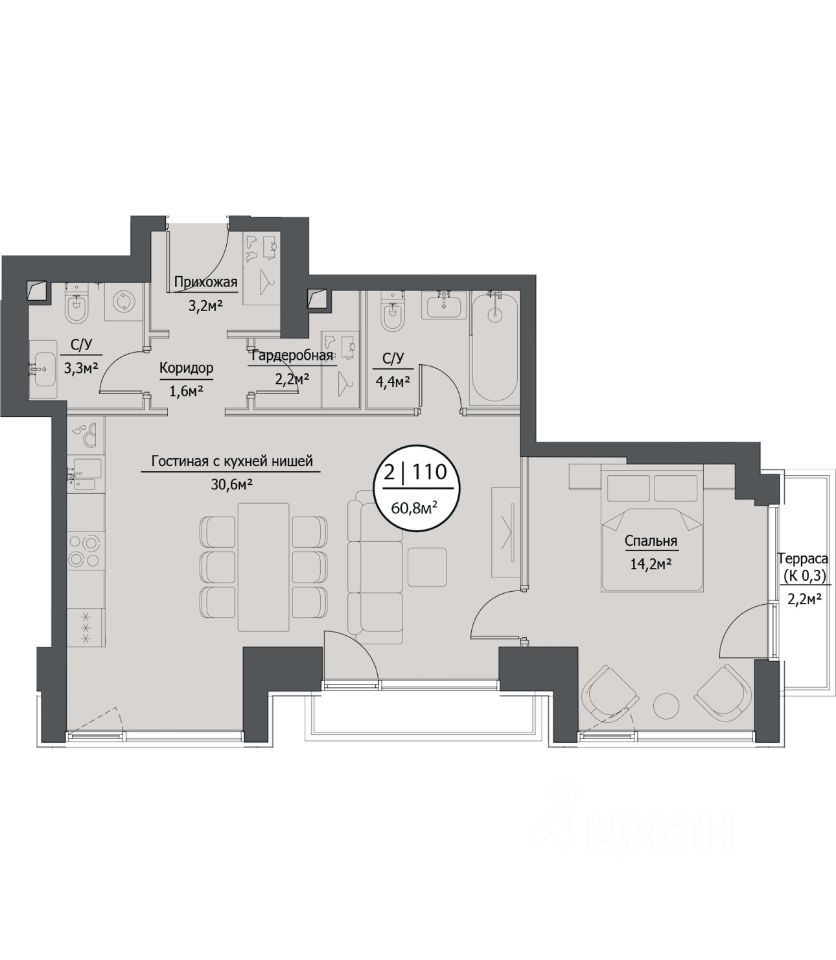 Функциональная планировка: гостиная с кухней нишей 30,6 кв.м., спальня 14 кв.м, 2 санузла, прихожая, гардеробная, 2 балкона. Высокие потолки 3,3 метра и окна в пол наполняют пространство светом. C квартиры открываются панорамные виды на Лужники и МГУ.